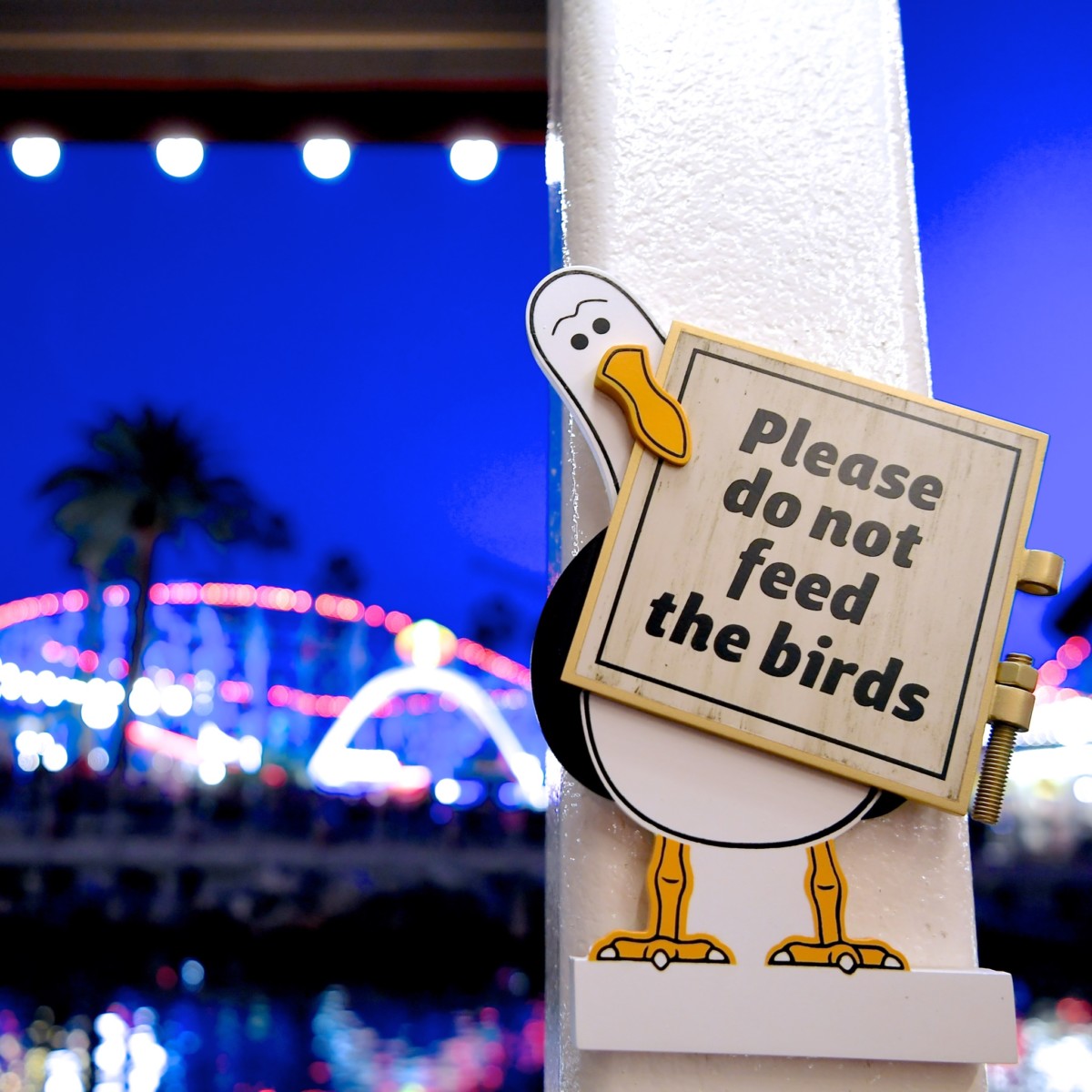 『ファインディング・ニモ』の人気キャラクター、かもめが持った楽しい看板。