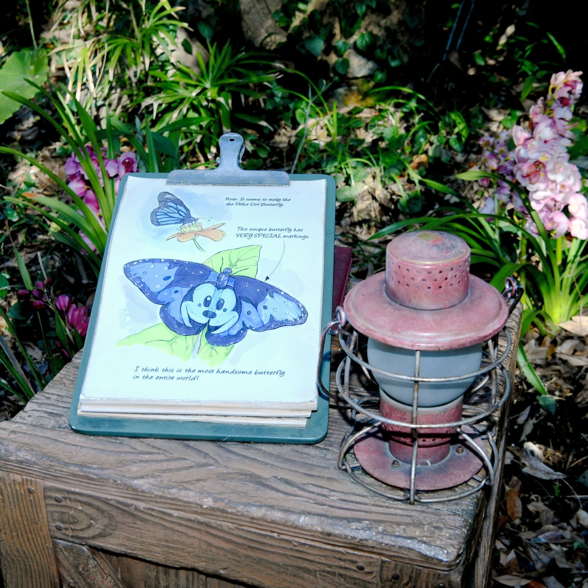 裏表紙には写真と、「ミッキー&フレンズ・グリーティングトレイル」で見ることができる虫たちがデザインされています。