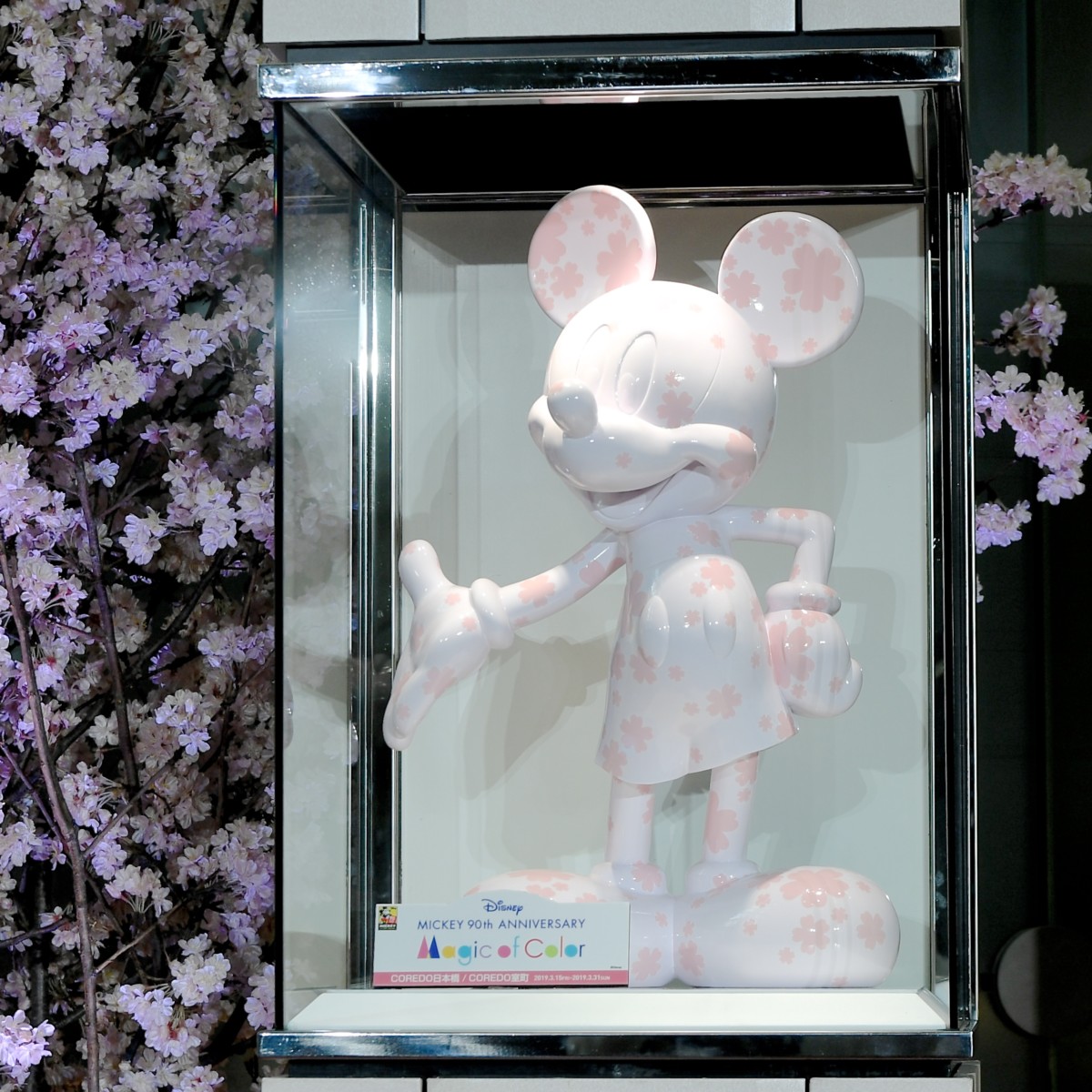 「ディズニー ミッキー90 周年 マジック オブ カラー(Disney Mickey 90th Anniversary Magic of Color)」日本橋限定で「桜モチーフのミッキーマウス立像」を展示。