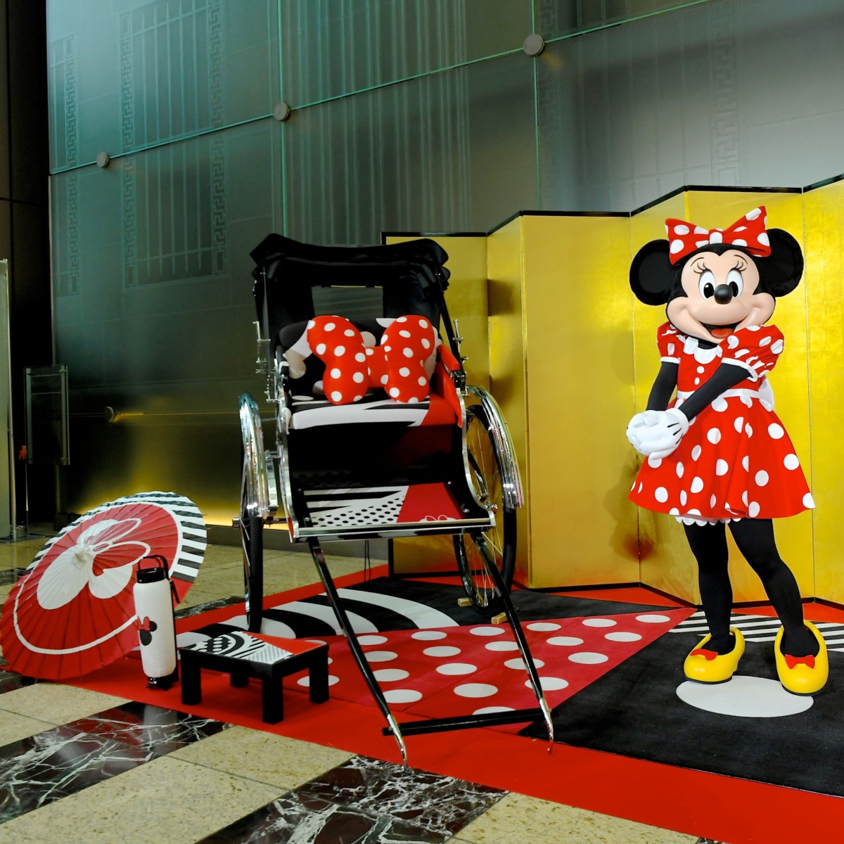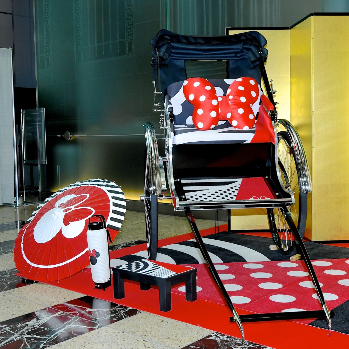コレド日本橋では、ミニーマウスのリボンをあしらった特別仕様の人力車が展示されます。