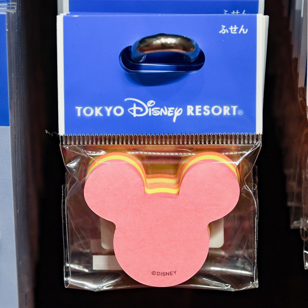 新作は、シンプルな四角ではなく、ディズニーランドのお土産らしく、ミッキーシェイプのかわいいふせんセットです。