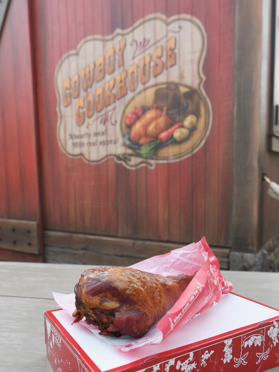 「カウボーイ・クックハウス」では、ボリューム満点の「スモークターキーレッグ」を提供。
