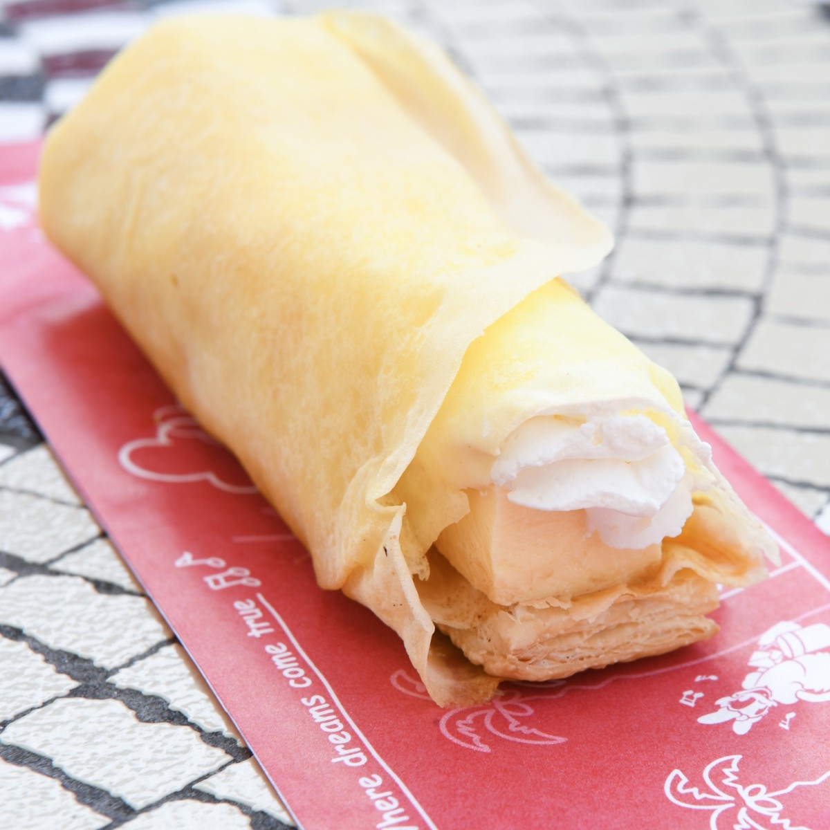 ディズニー・イースター期間にぴったりなたまごをつかったプリンのクレープ。