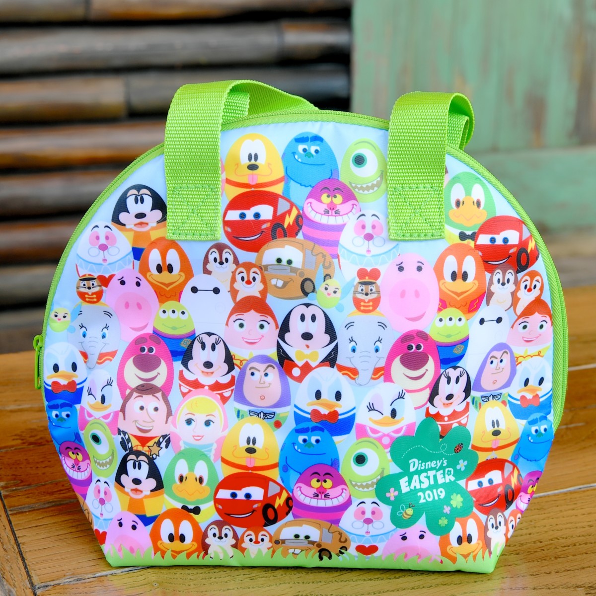イースターエッグデザインのミッキーたちがぎゅっと描かれたコロンとかわいいランチケース☆