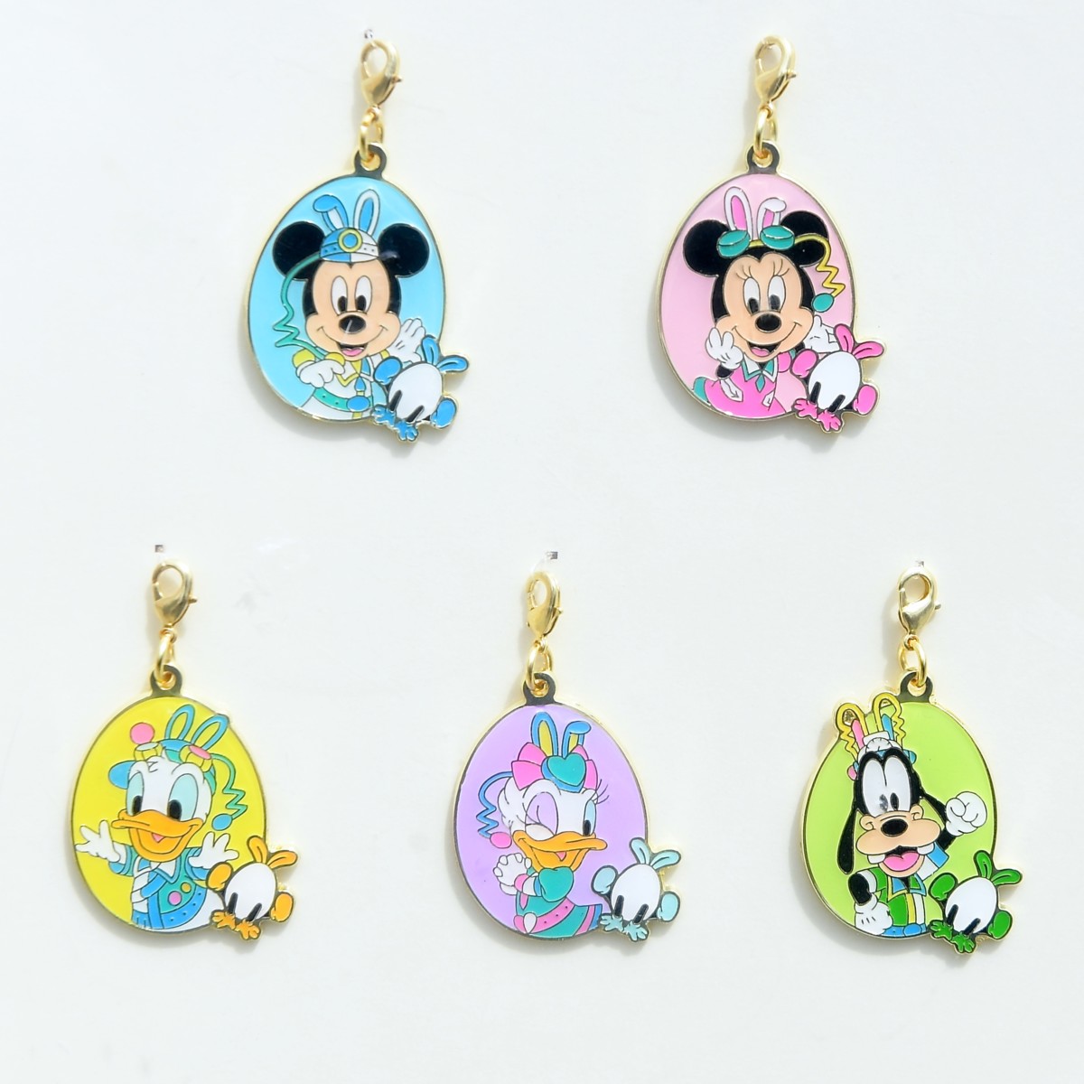 チャームはミッキー、ミニー、ドナルド、デイジー、グーフィーの5種類。