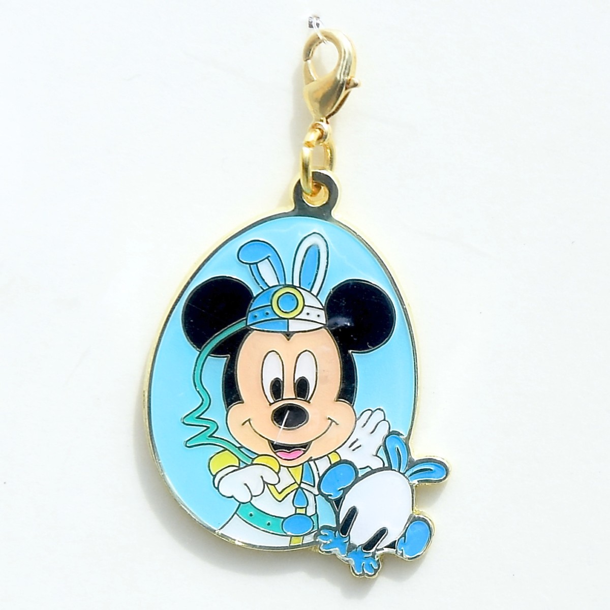うさたまチェイサーに扮したミッキーとうさたまデザインのブルーのタマゴ型チャーム。