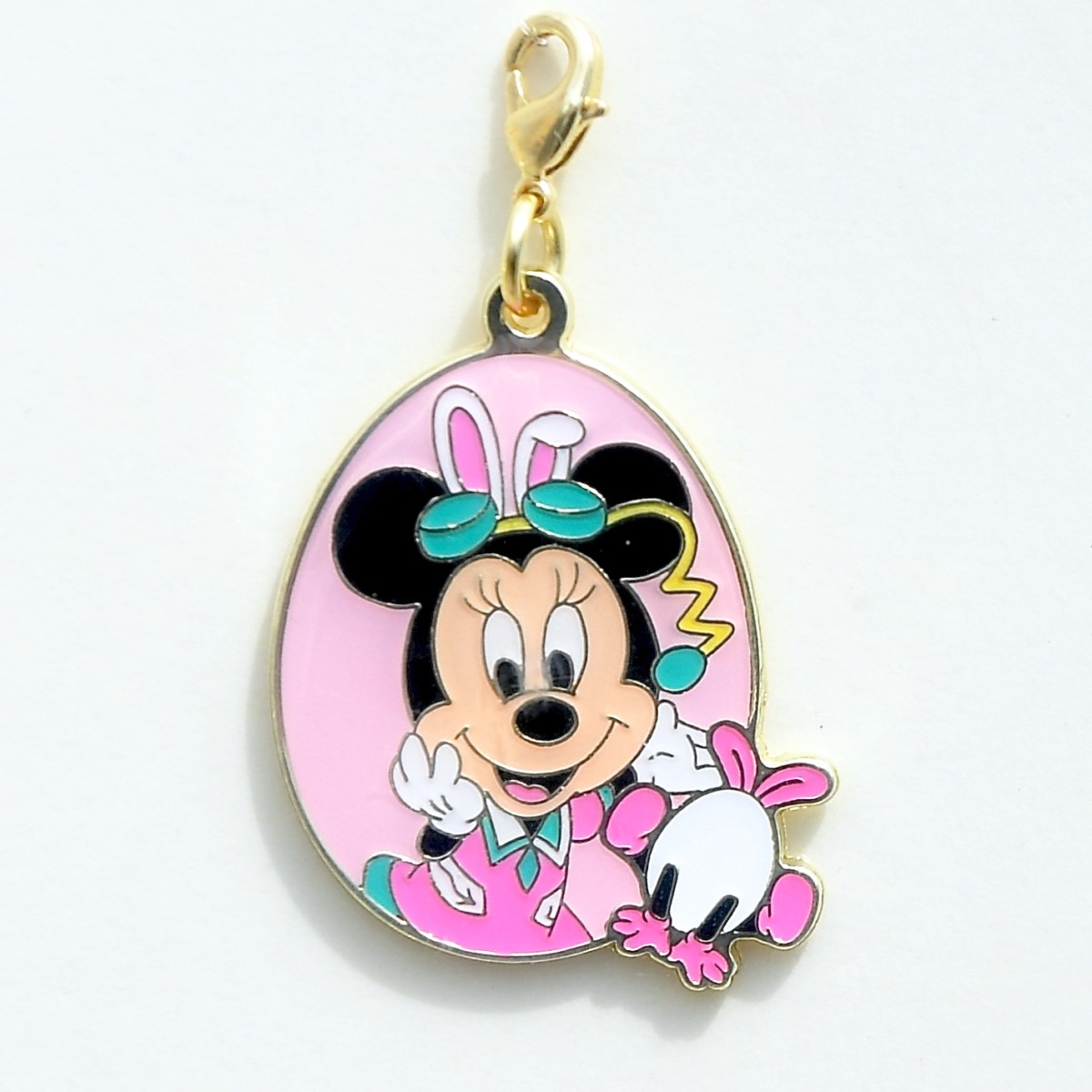 ミニーちゃんはピンクのうさたま、ピンクのタマゴ型チャームです。