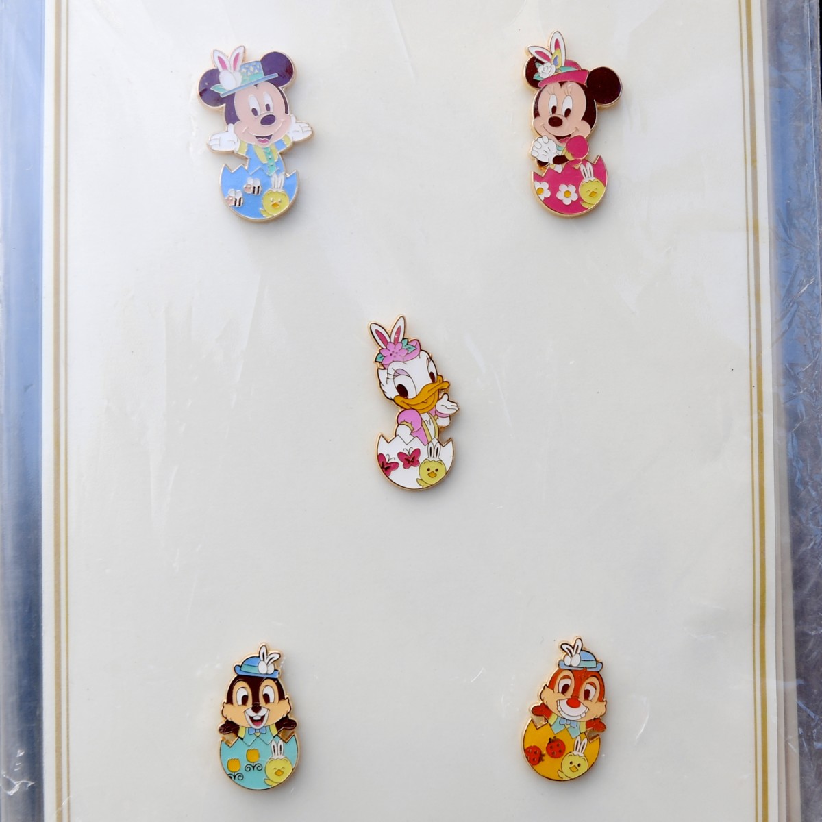 たまごの殻にすっぽり入ったミッキーたちのピンバッジもとてもかわいいですね!