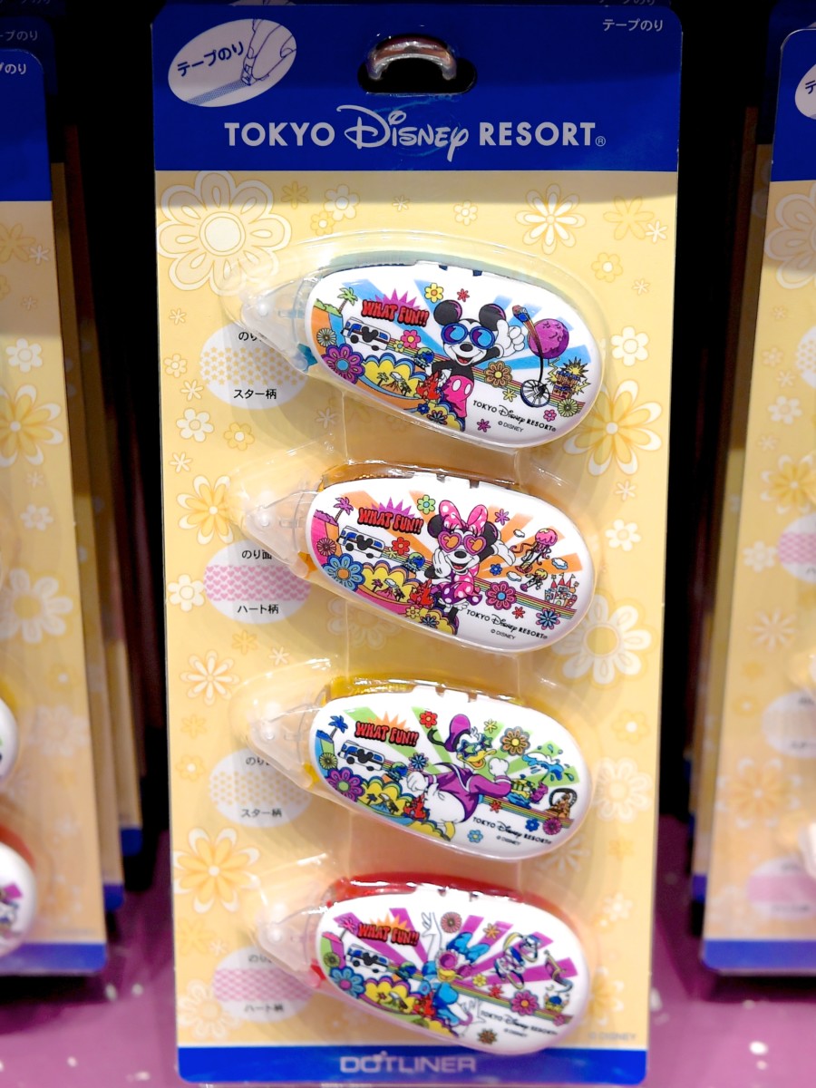 ミッキー、ミニー、ドナルド、デイジーのテープのり4種類入り。