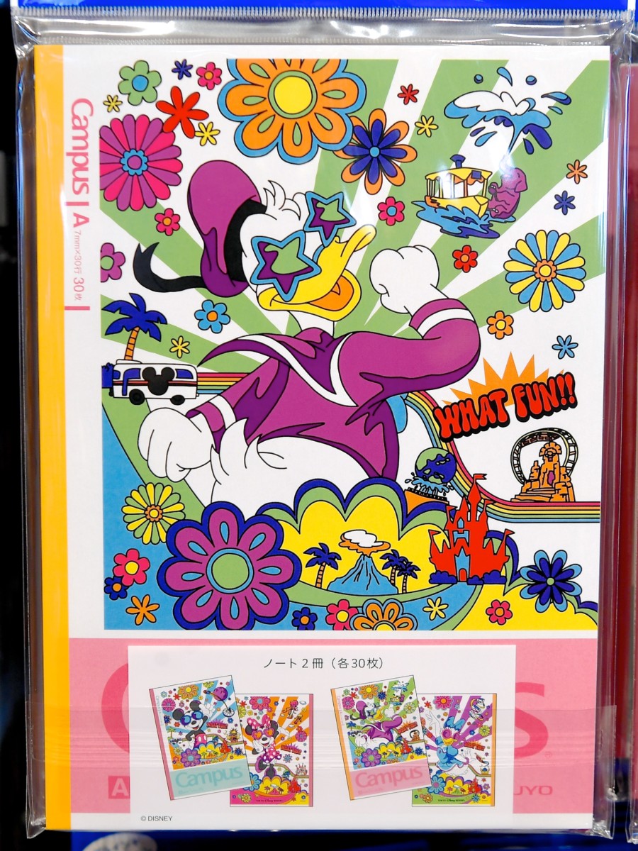 コクヨの定番ノート「Campus(キャンパス)」は表がミッキー、裏をミニーでデザインしたノートと、