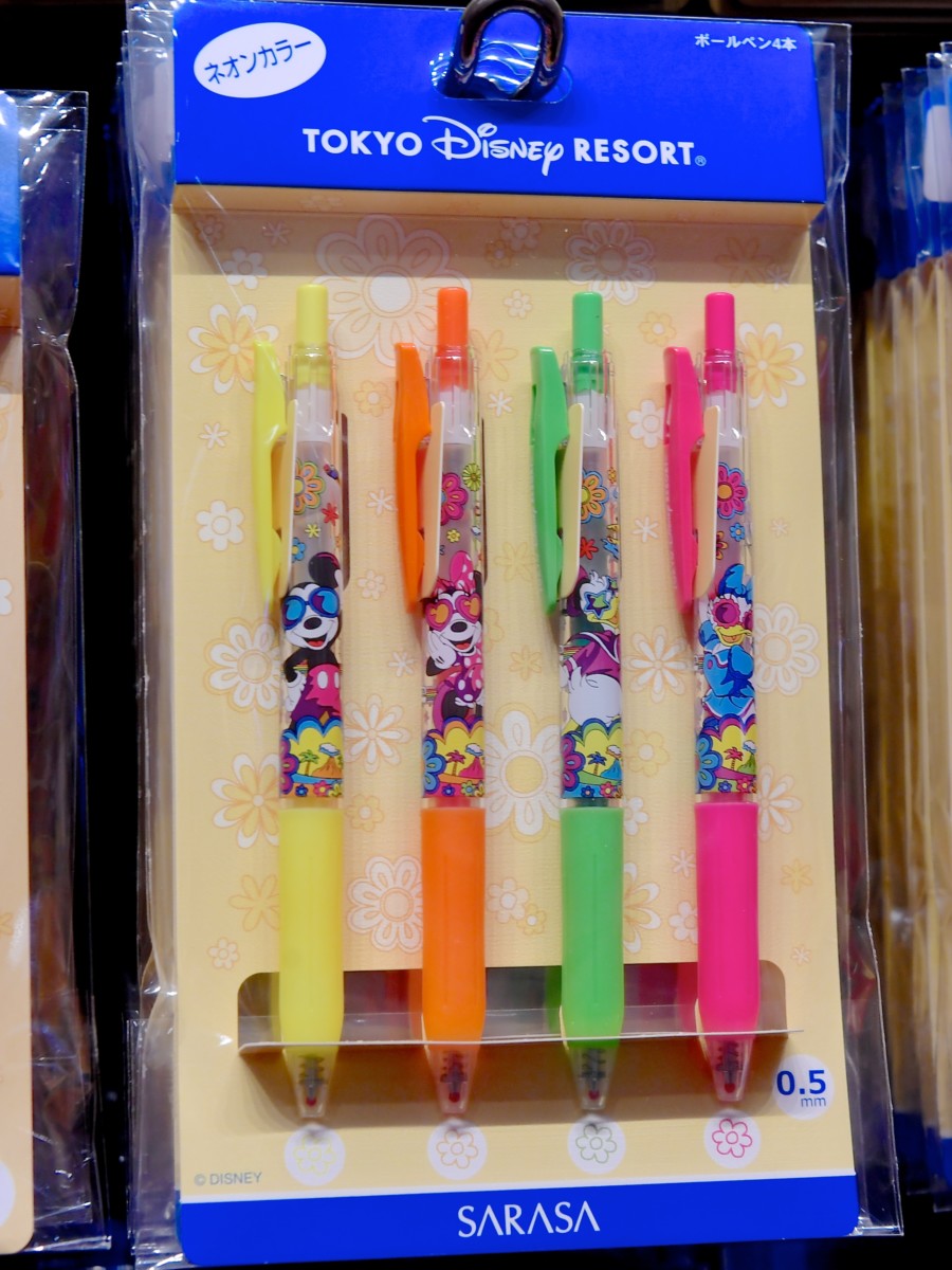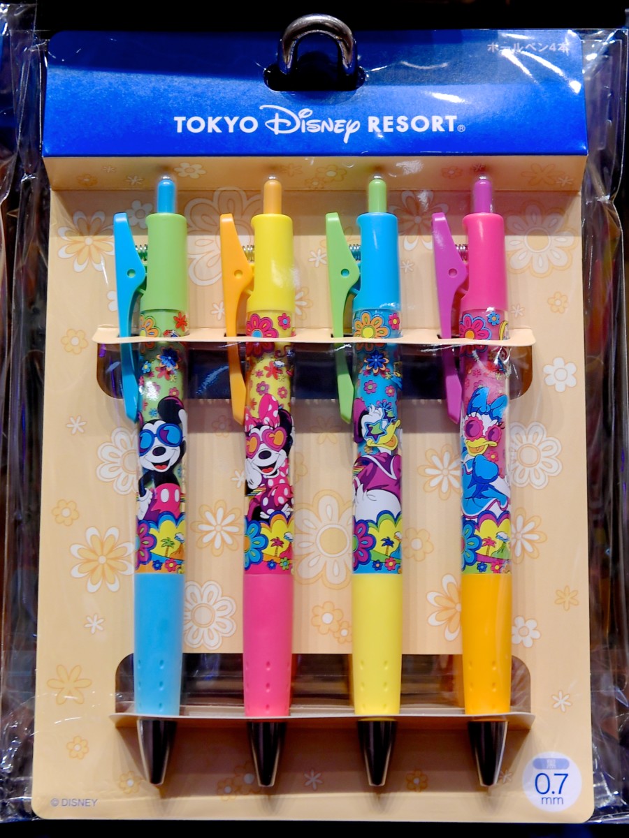 ミッキー、ミニー、ドナルド、デイジーのボールペン4本入り。