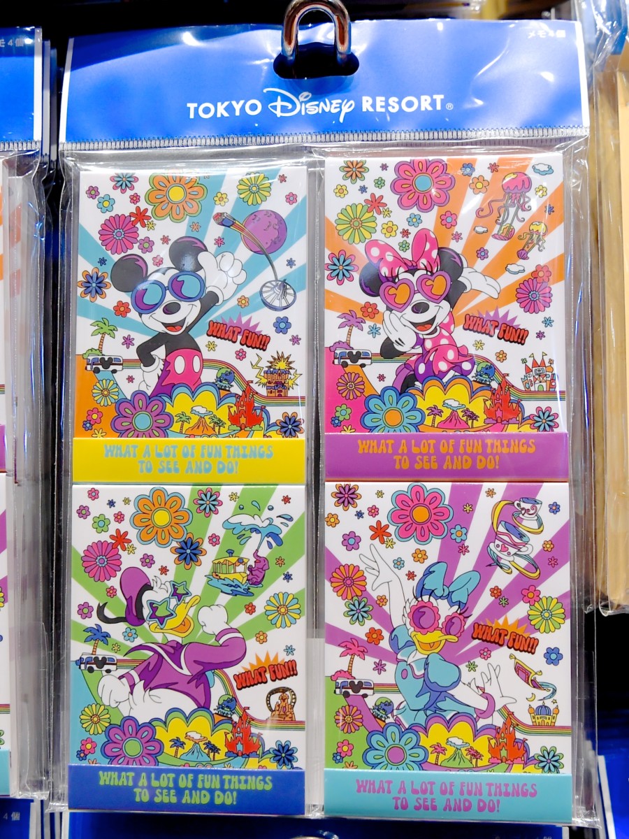 ミッキー、ミニー、ドナルド、デイジーのメモ帳4種類入り。