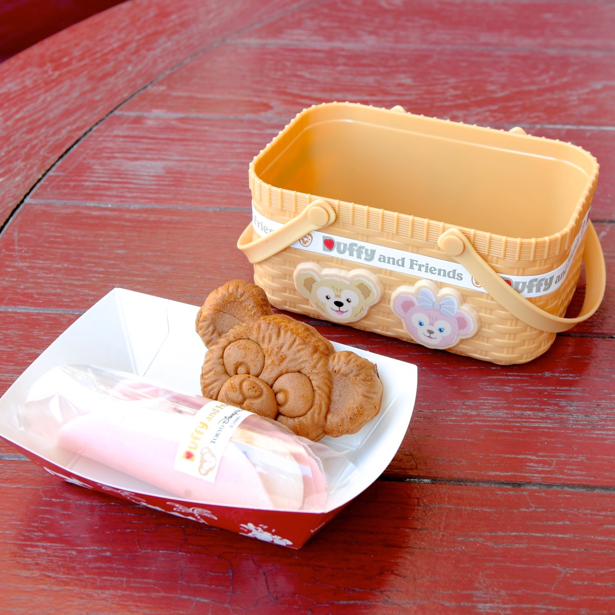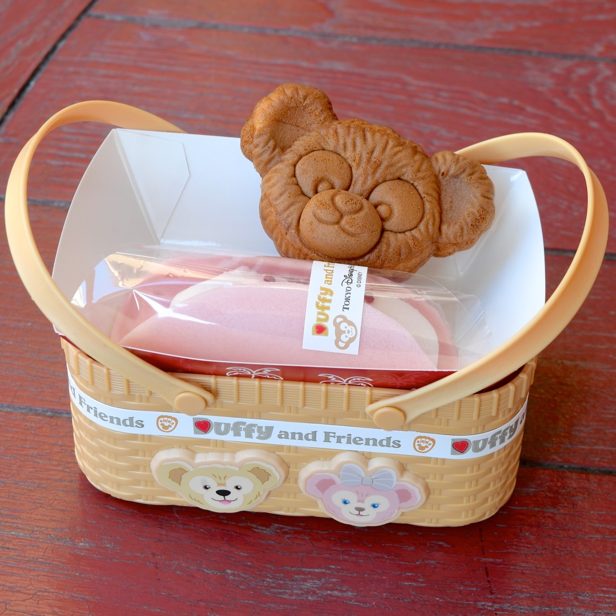 小物入れにつかいたいダッフィーデザインのバスケット型スーベニアケース付きのデザートセット。