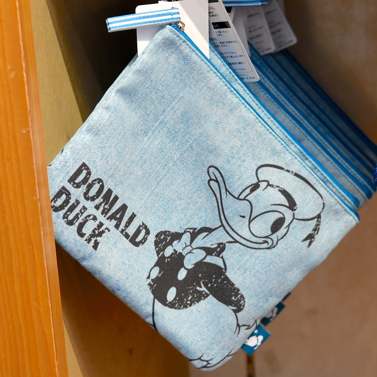 ドナルドのポーチは水色です。
