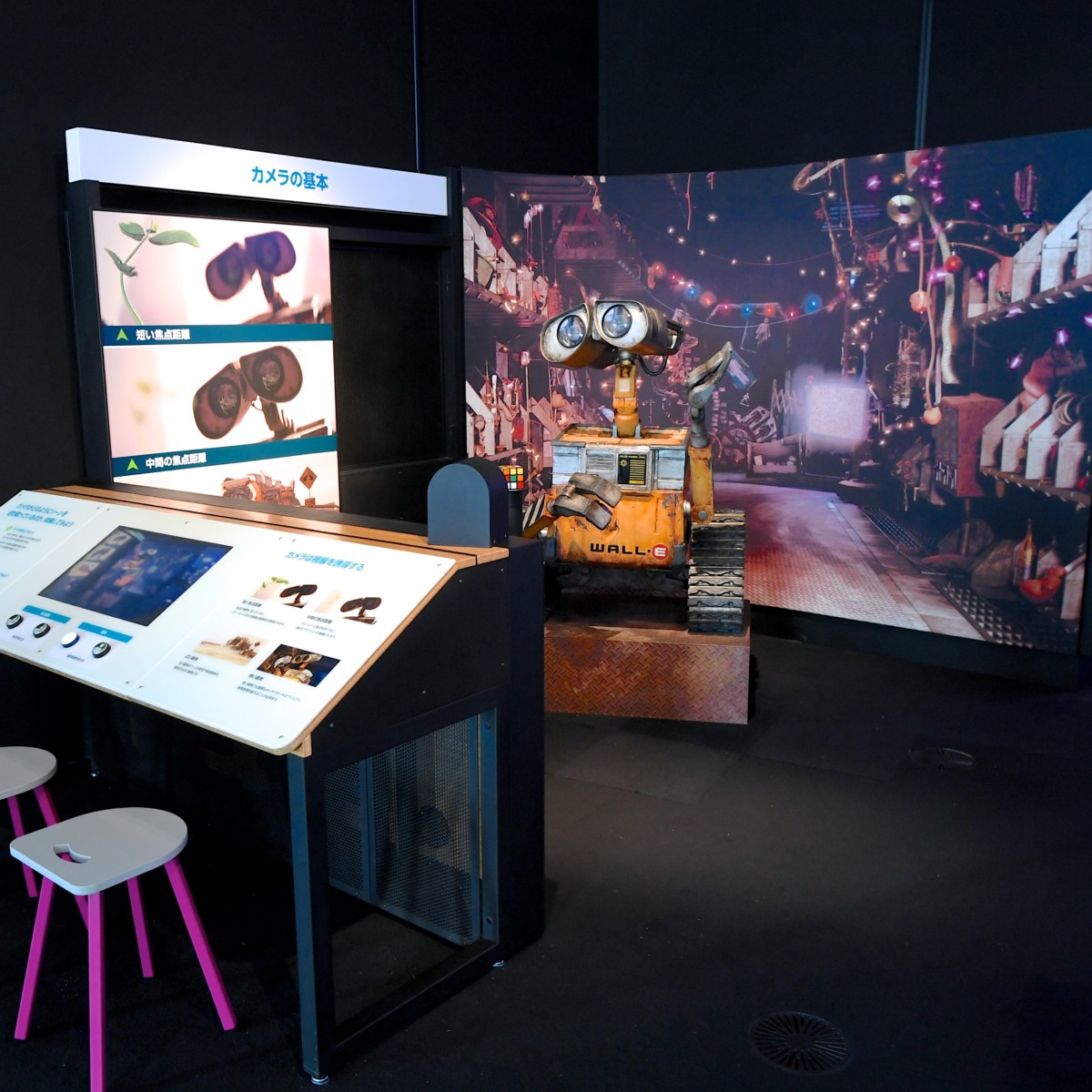 PIXARの作品づくりのひみつを、人気作品の制作工程を実際に体験しながら理解することができる展示です☆
