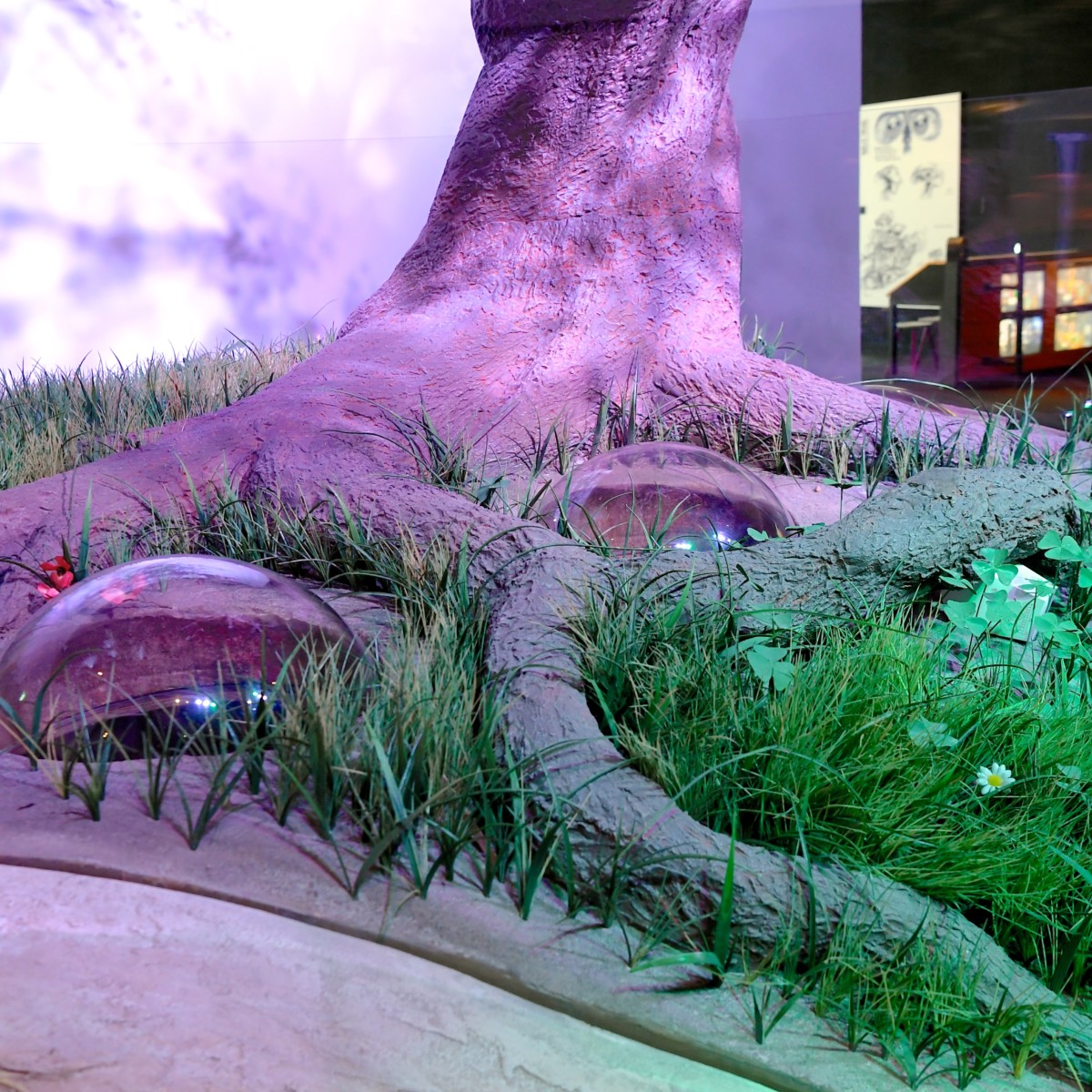 木の根元から顔をだし、まるで小さな虫たちになった気分でセットの見え方を検証できます。