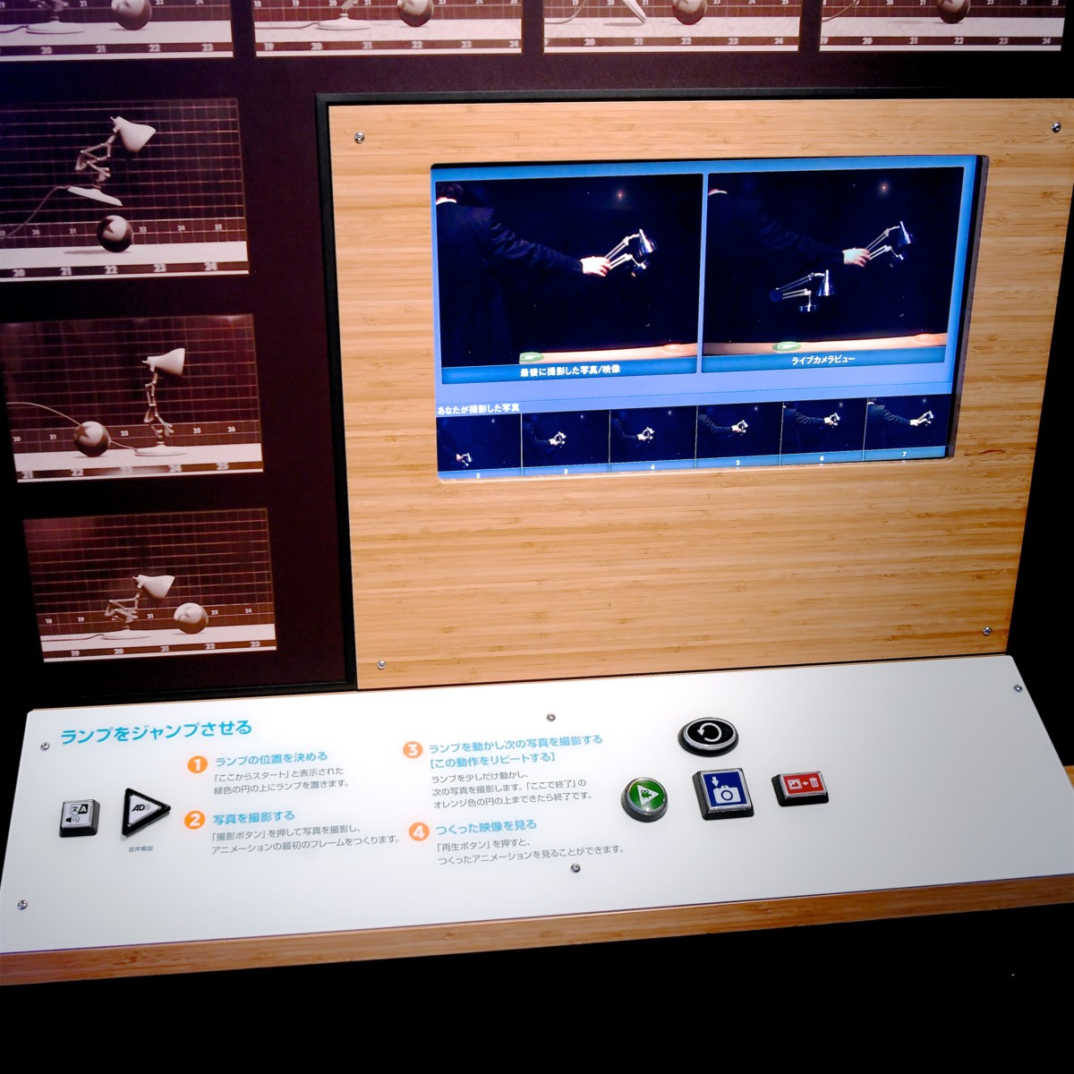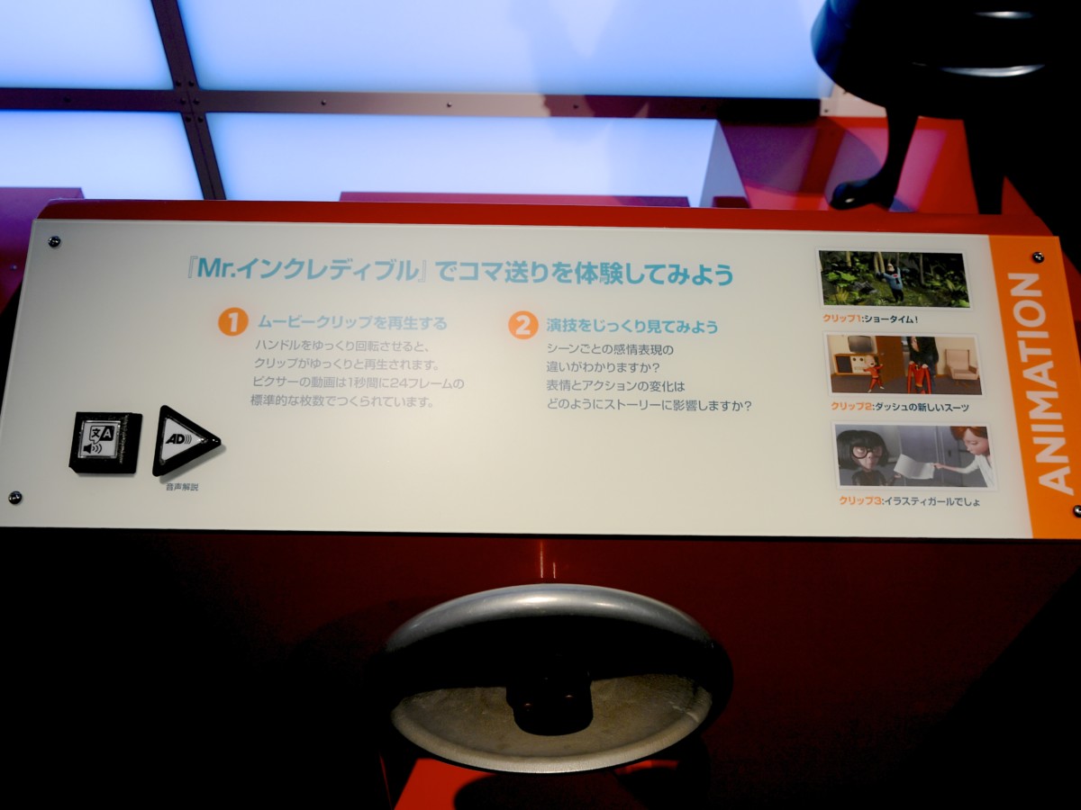 1秒間に24フレームの枚数でつくられるピクサーの動画をハンドルを回転させることで再生。