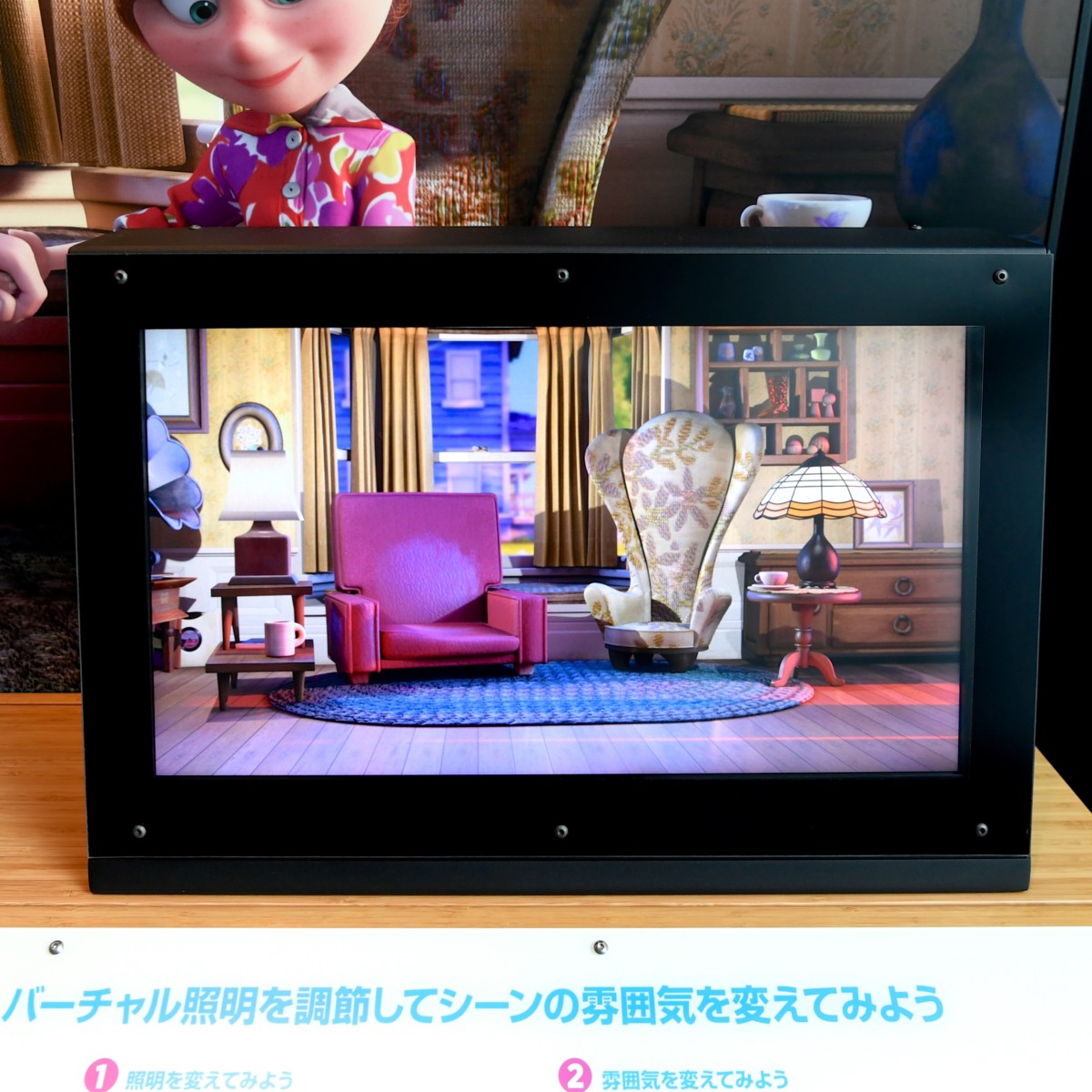 照明を調節することでシーンの雰囲気が変わる様子を体験できます。