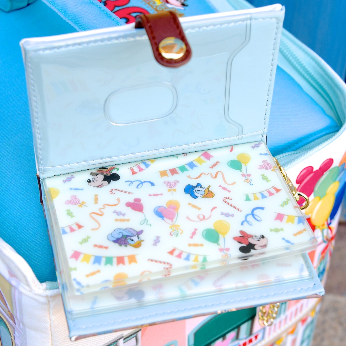 ケース内のカード入れにもミッキーマウス、ミニーマウス、ドナルドダック、デイジーダックのお顔とミッキーバルーン、リボンなどがカラフルに描かれています。