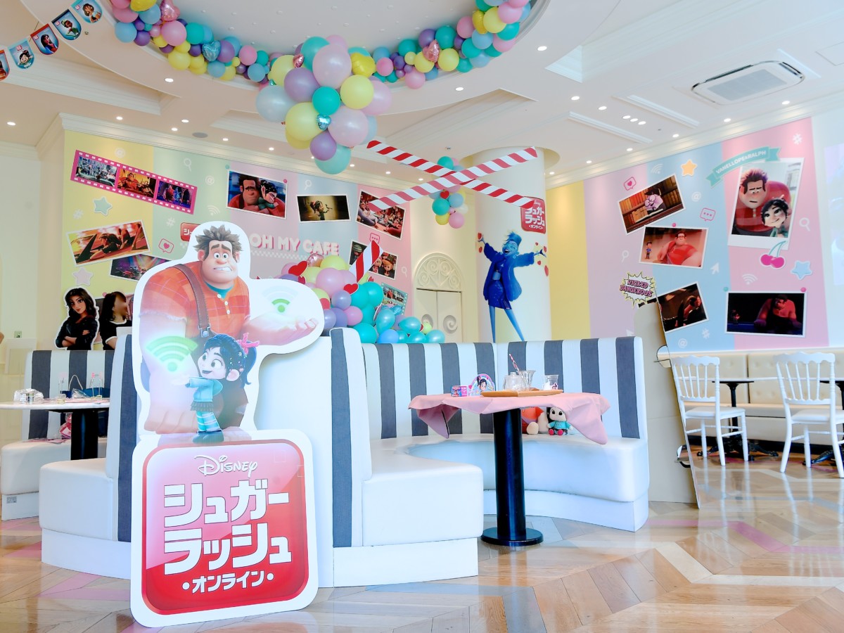 店内のかわいいデコレーションも魅力な「『シュガー・ラッシュ:オンライン』MovieNEX発売記念OH MY CAFE」