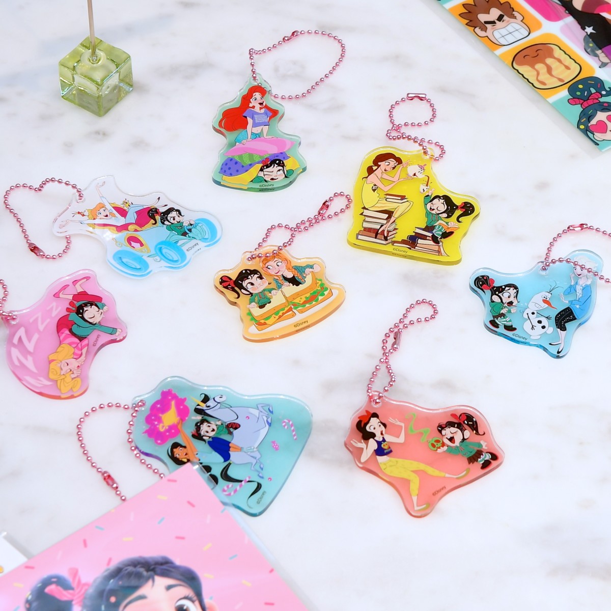 「Oh My Disney」内で活躍するディズニープリンセスたちとヴァネロペがデザインされたアクリルキーホルダー。