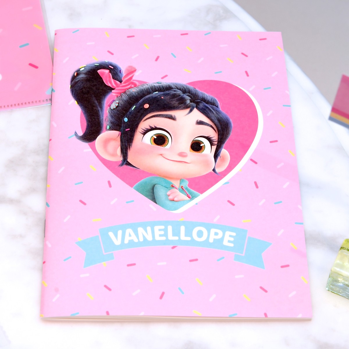 表にヴァネロペ、裏にラルフ、シャンク、ノウズモア、イエスがデザインされたノート。
