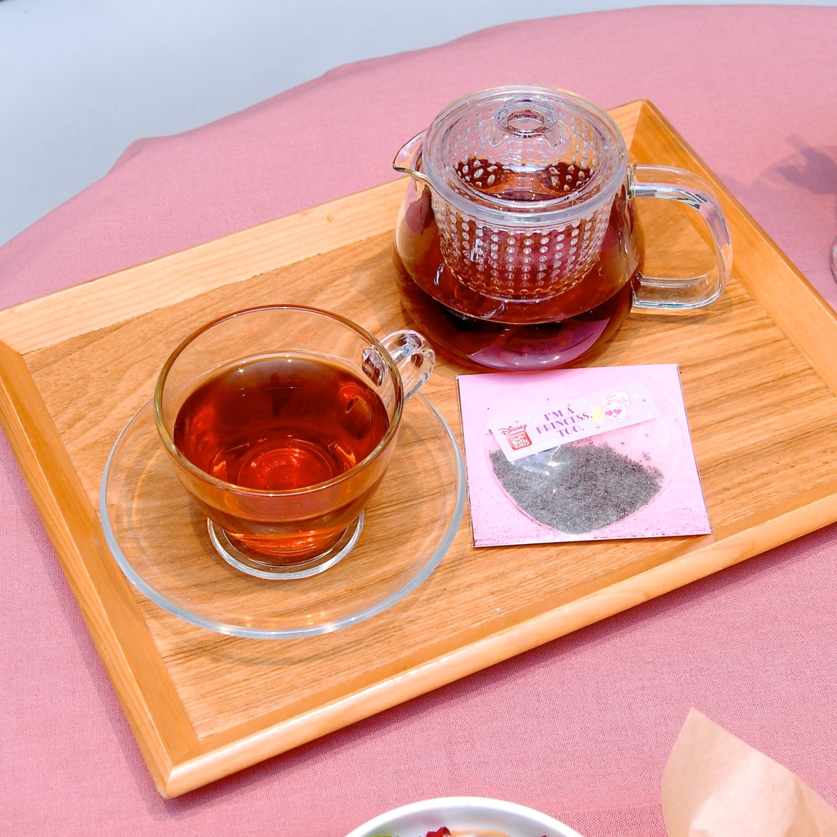 ディズニープリンセス、ヴァネロペがデザインされたハート型のティバッグがかわいい紅茶。