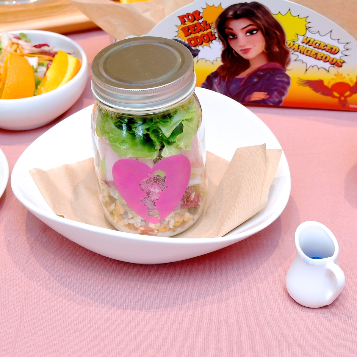 『シュガー・ラッシュ:オンライン』に登場する「イエス」のマットがついたサラダ。