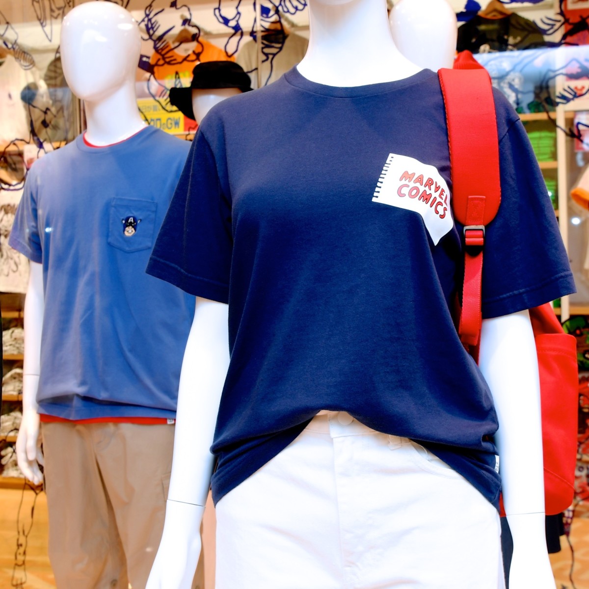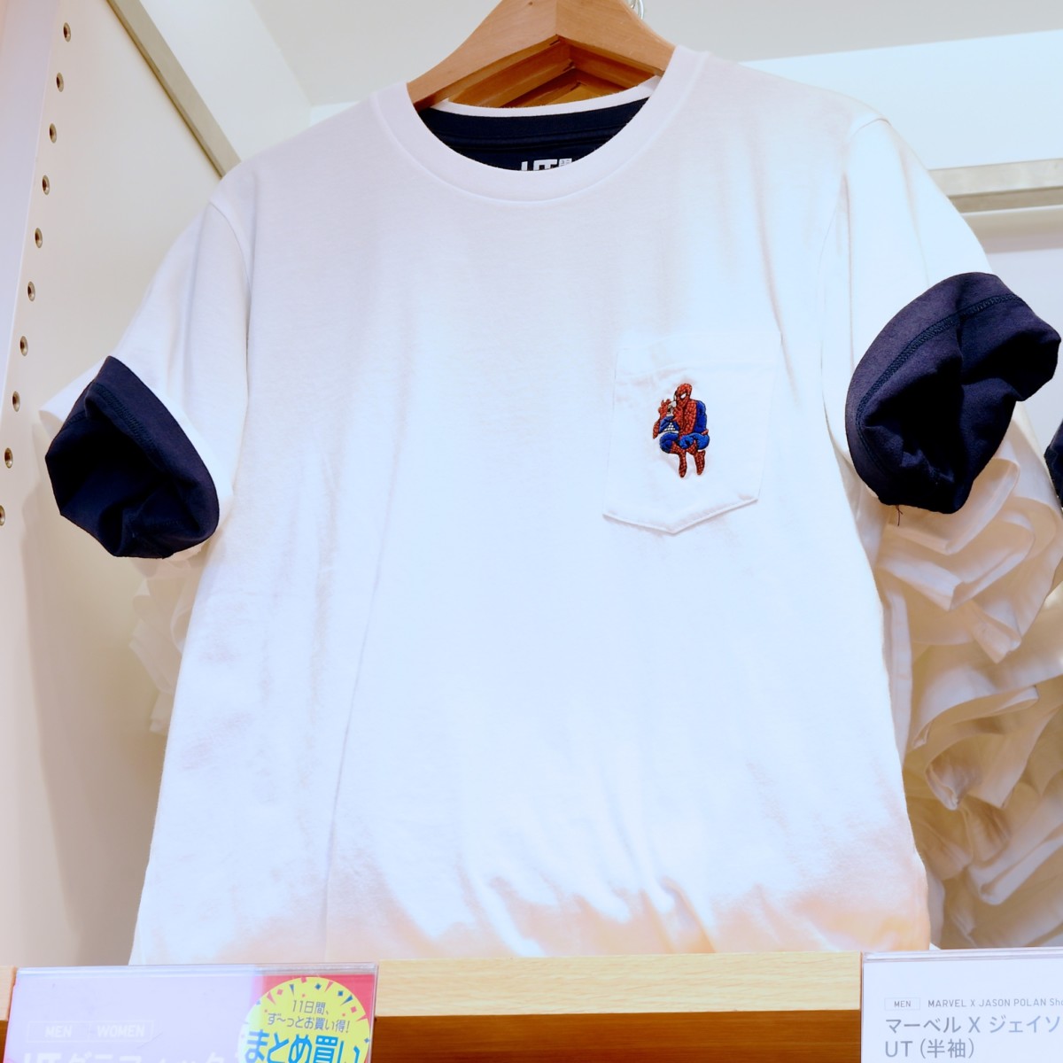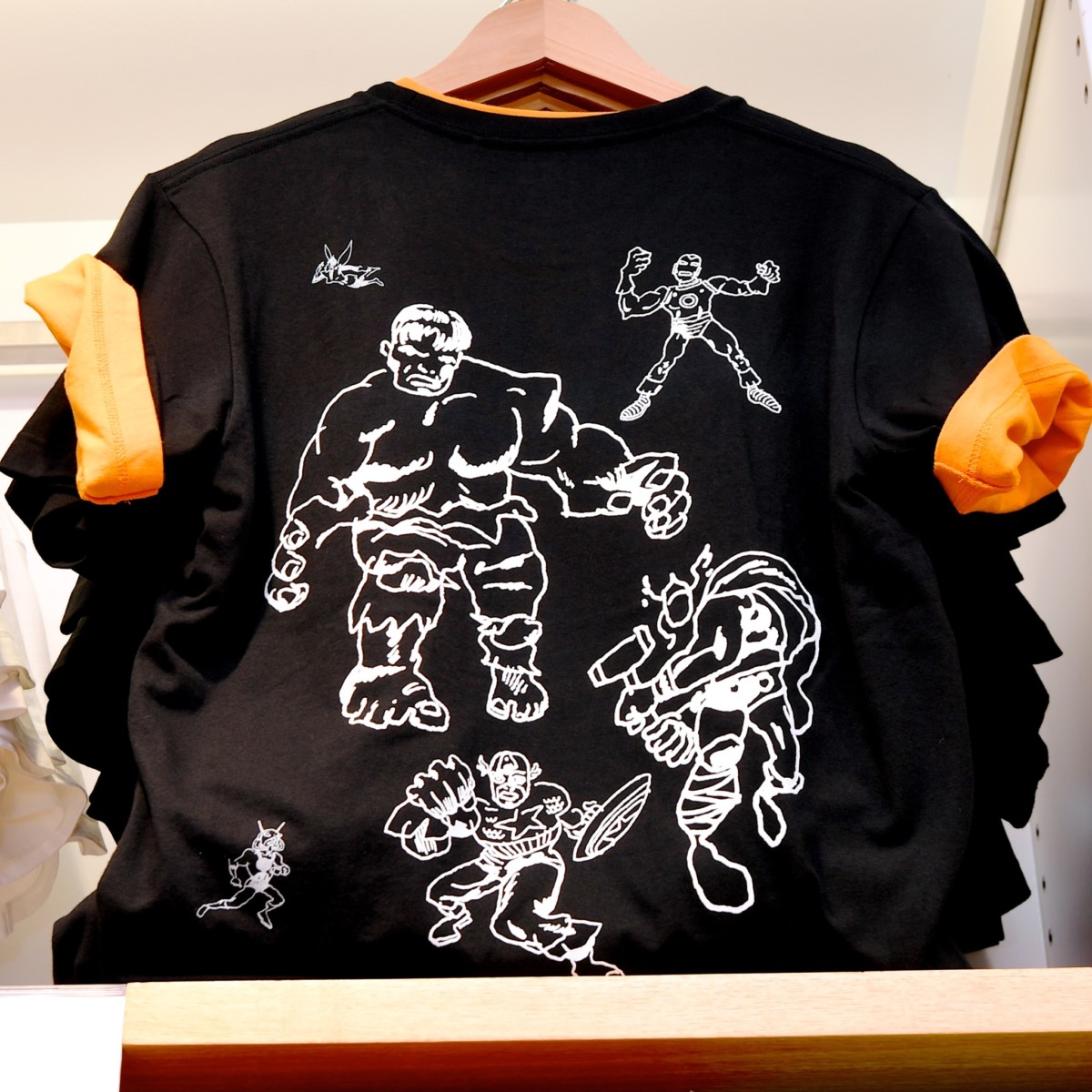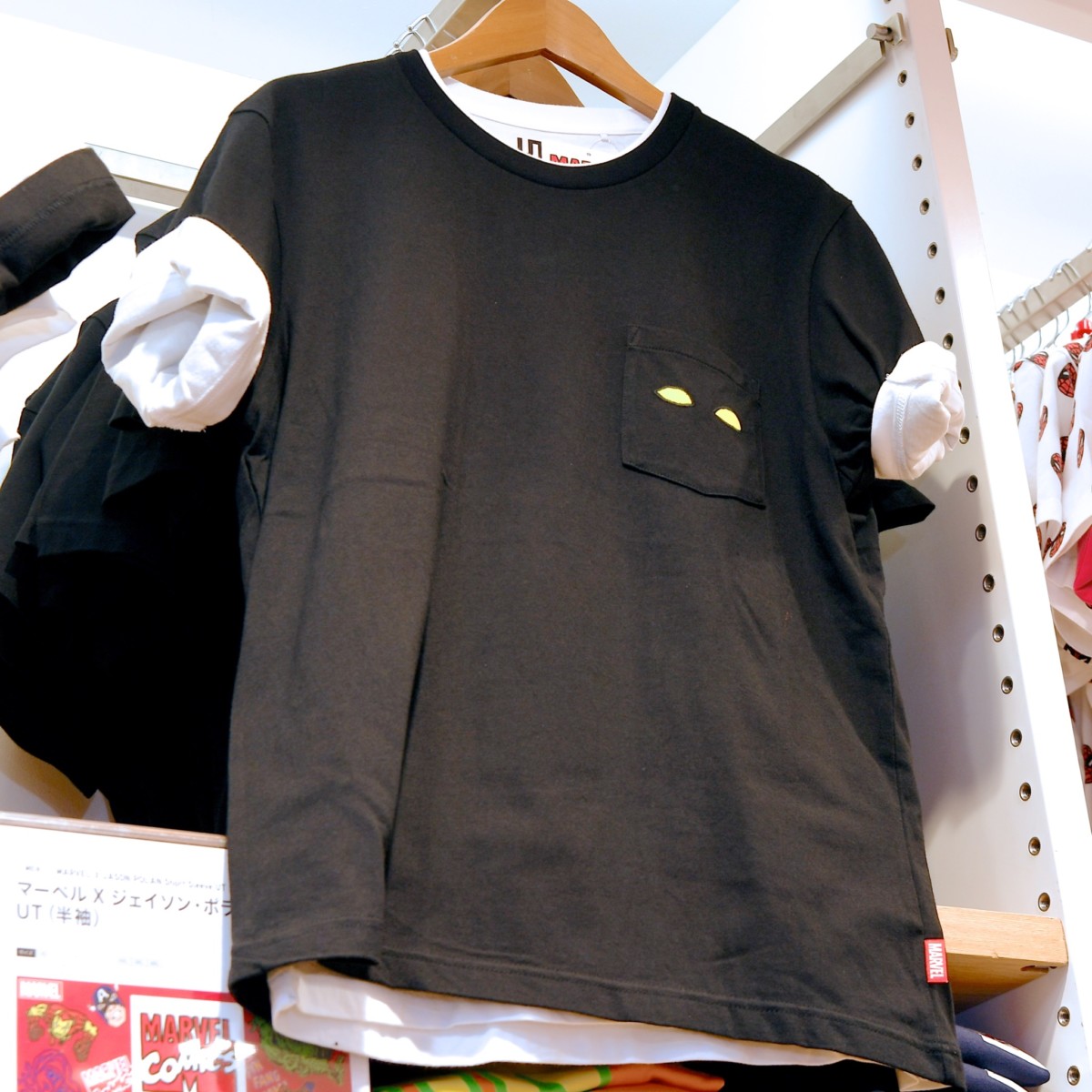 さりげなくスーパーヒーローたちがデザインされたワンポイントTシャツも販売中。