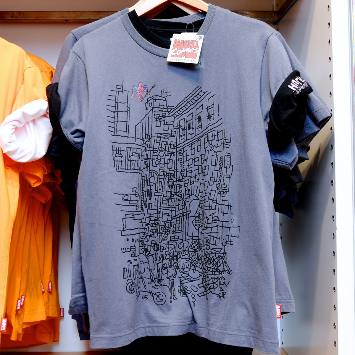 ニューヨークの人気アーティスト、ジェイソン・ポランが描く世界がデザインされたUTだけのマーベルデザインです☆