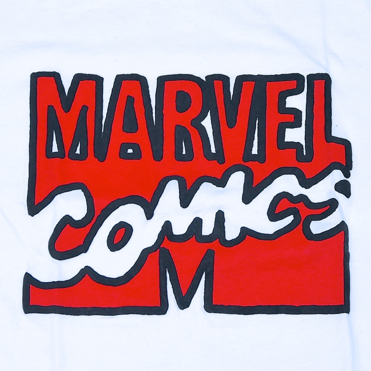 マーベルコミックのロゴをポップに仕上げたデザインTシャツ。