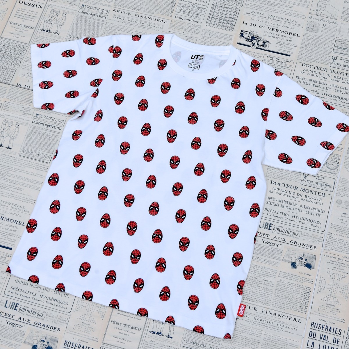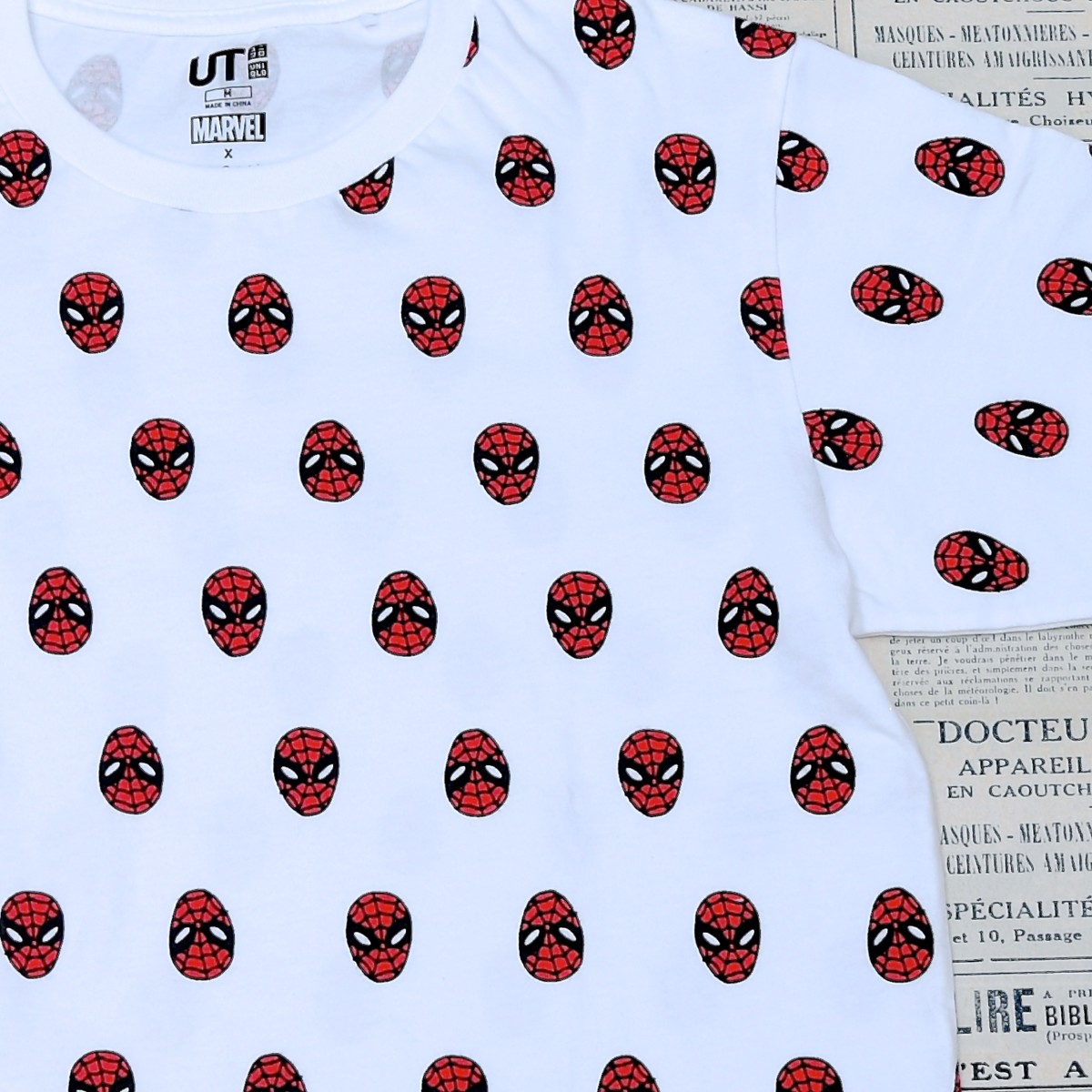 スパイダーマンのお顔が総柄で描かれたTシャツ。