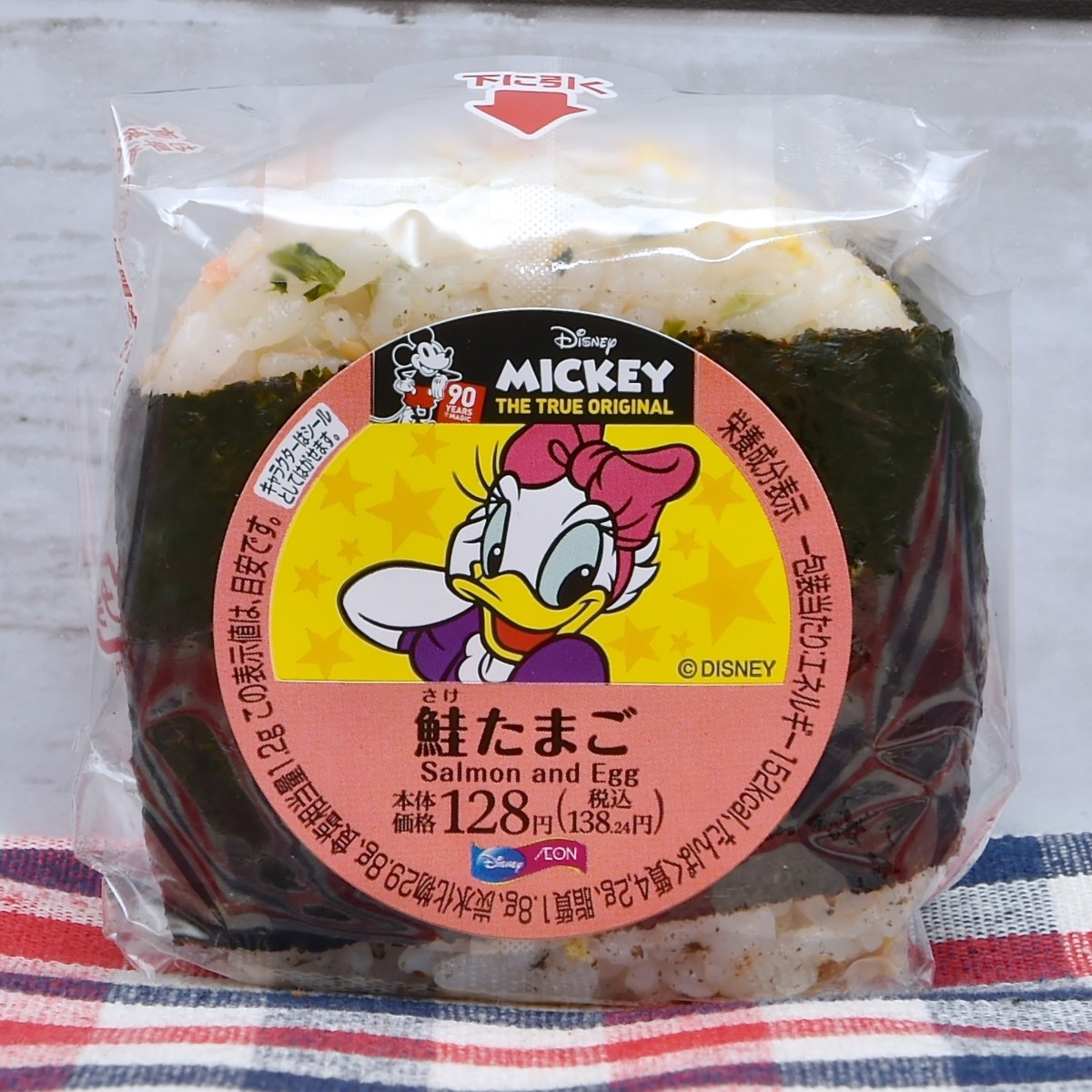 ミッキーマウス90周年を記念し、ミッキー&フレンズがデザインされたシール付きのおにぎり(おむすび)6種類。