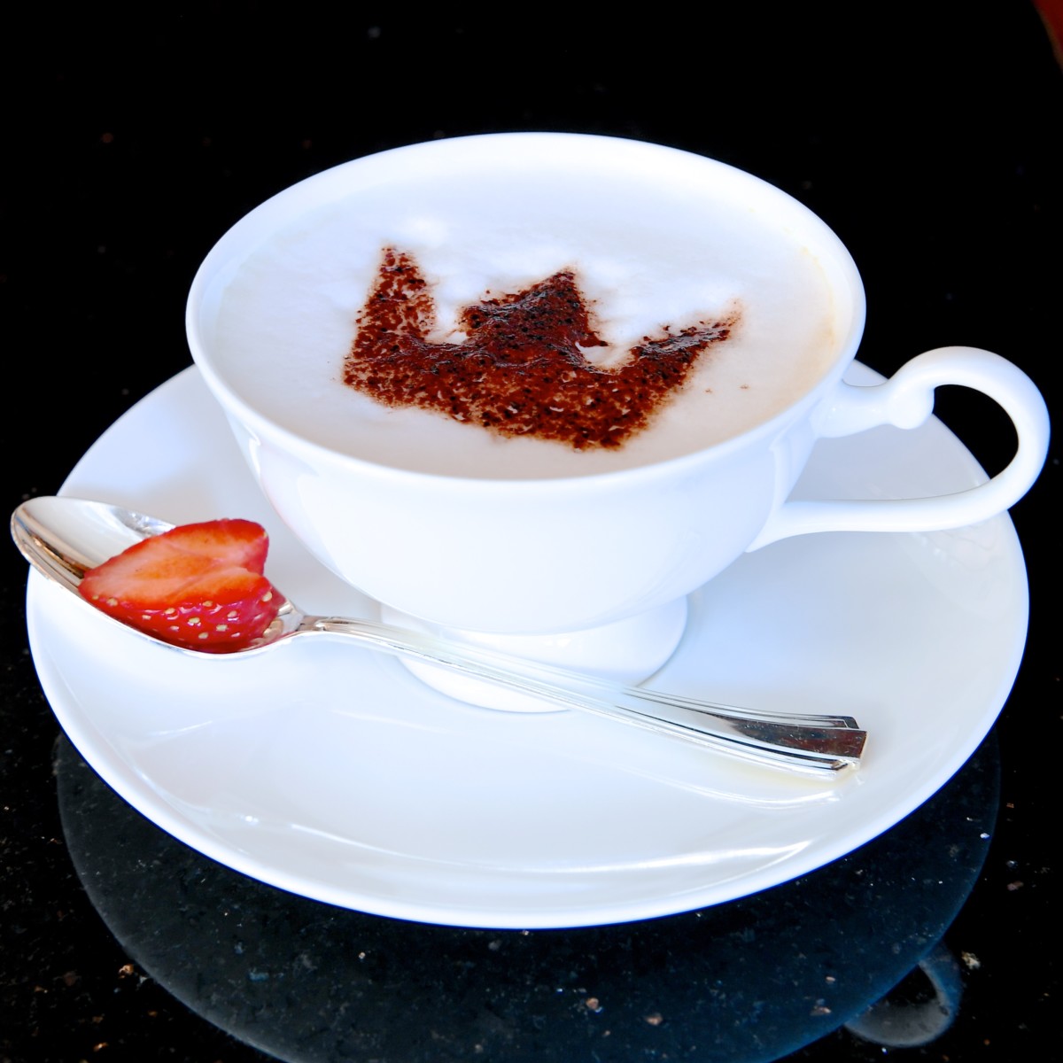シリーズのモチーフである王冠をココアパウダーでデザインしています。