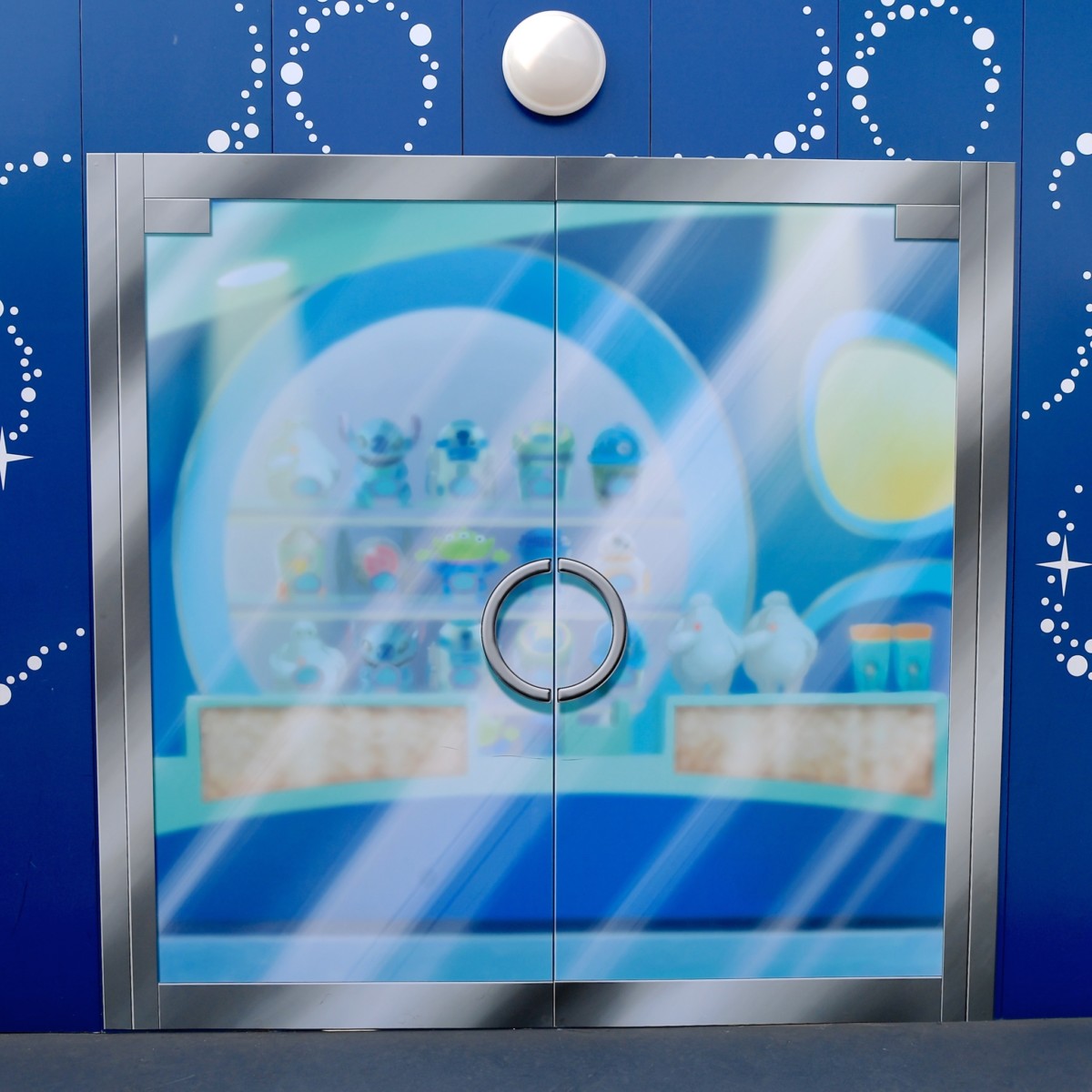 そんな拡張工事現場の前に設置されている柵(壁)に新しく登場するアトラクションやショップのドアのイメージアートが登場しています☆