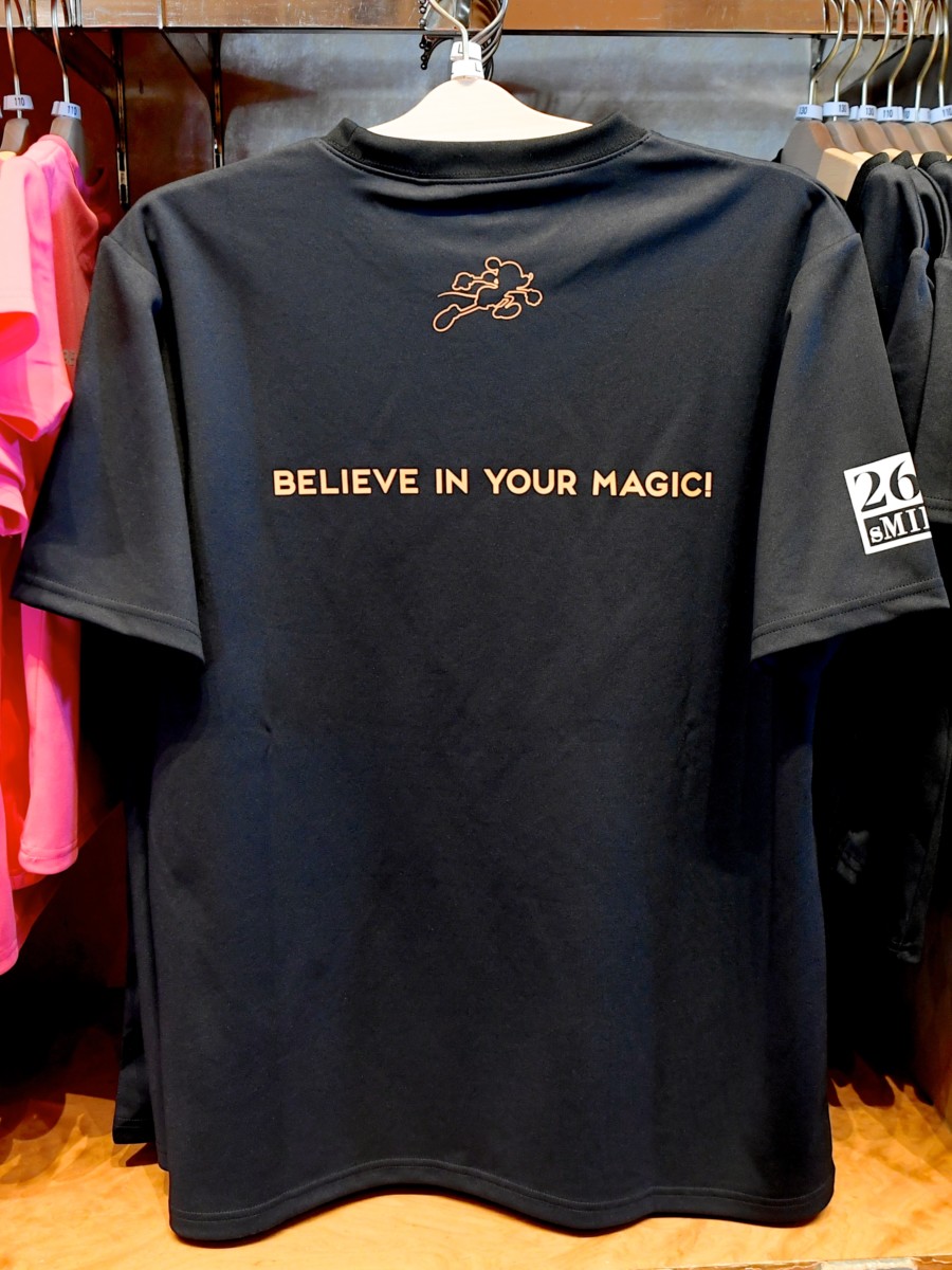 バックデザインはミッキーマウスのシルエットと BELIEVE IN YOUR MAGIC!です。