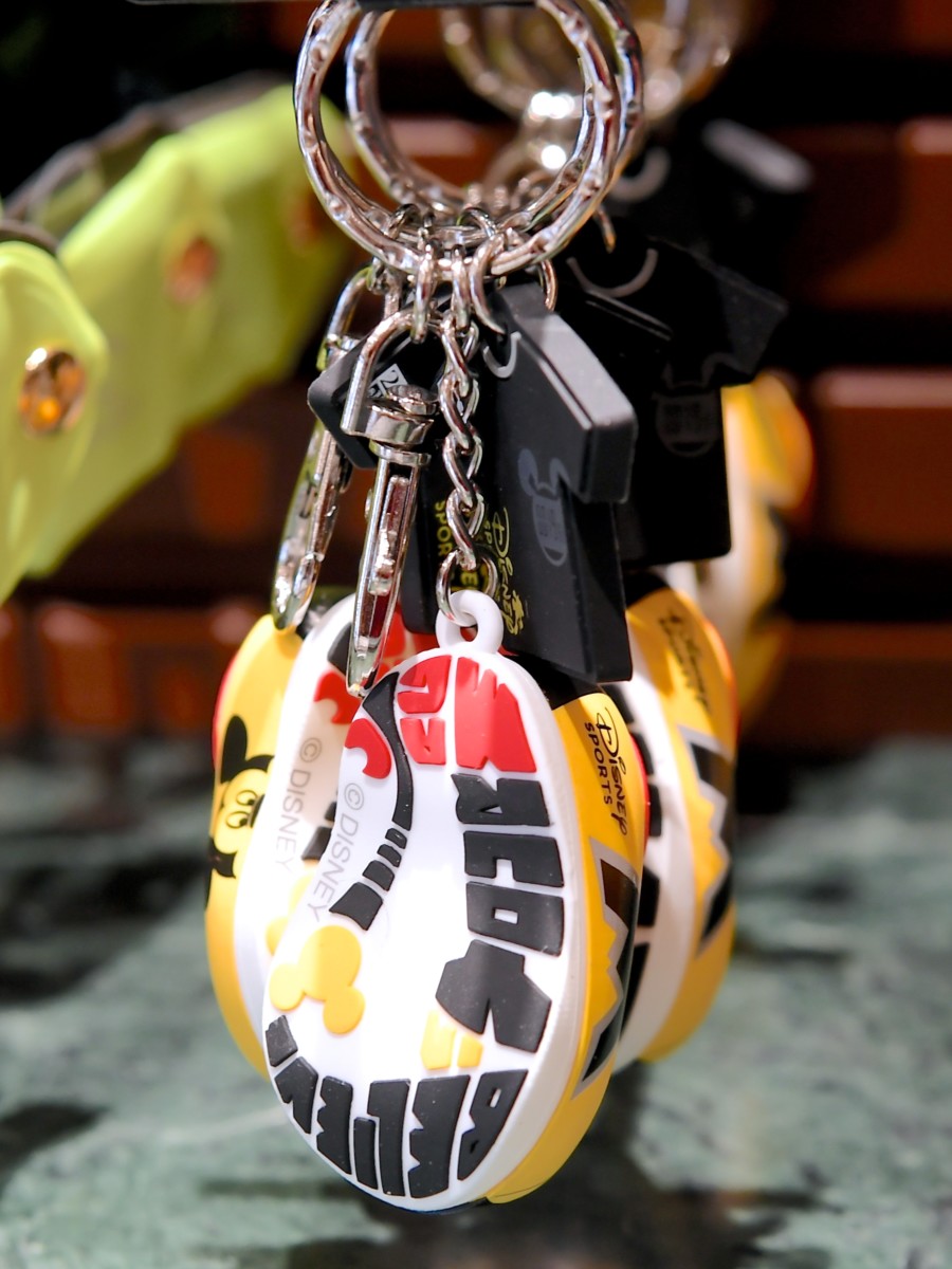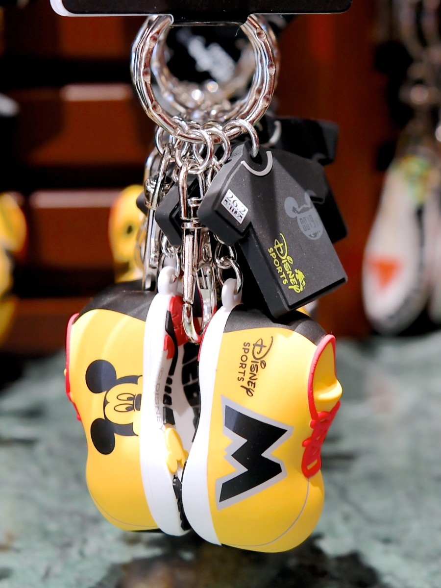 ミッキーのランニングシューズ、Tシャツがデザインされたキーチェーン。