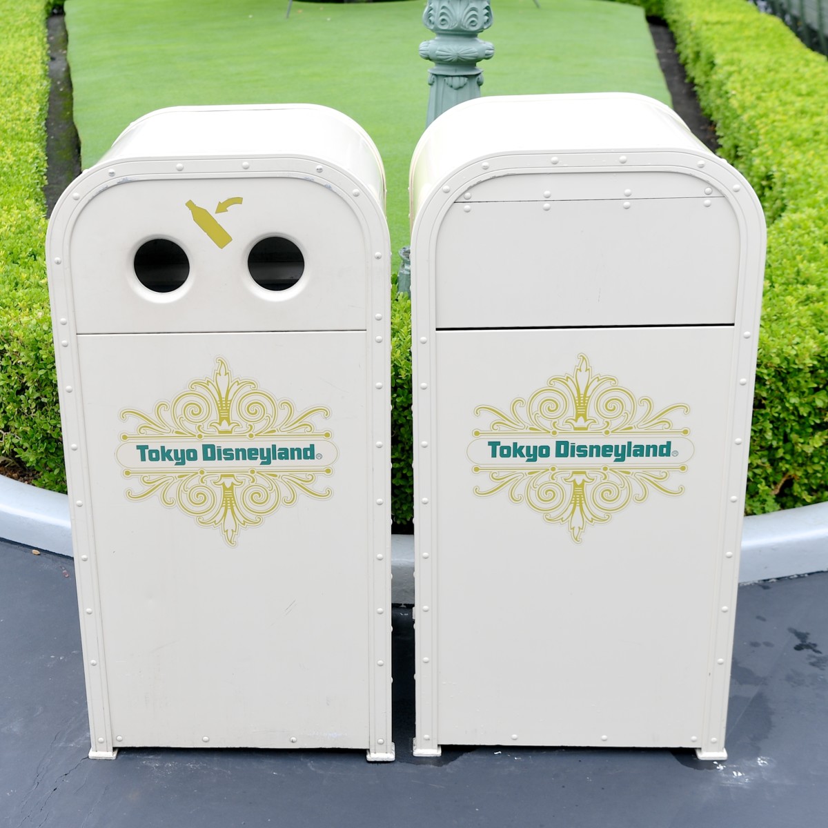 東京ディズニーランドのメインエントランスにあるロゴ入りトラッシュカン。