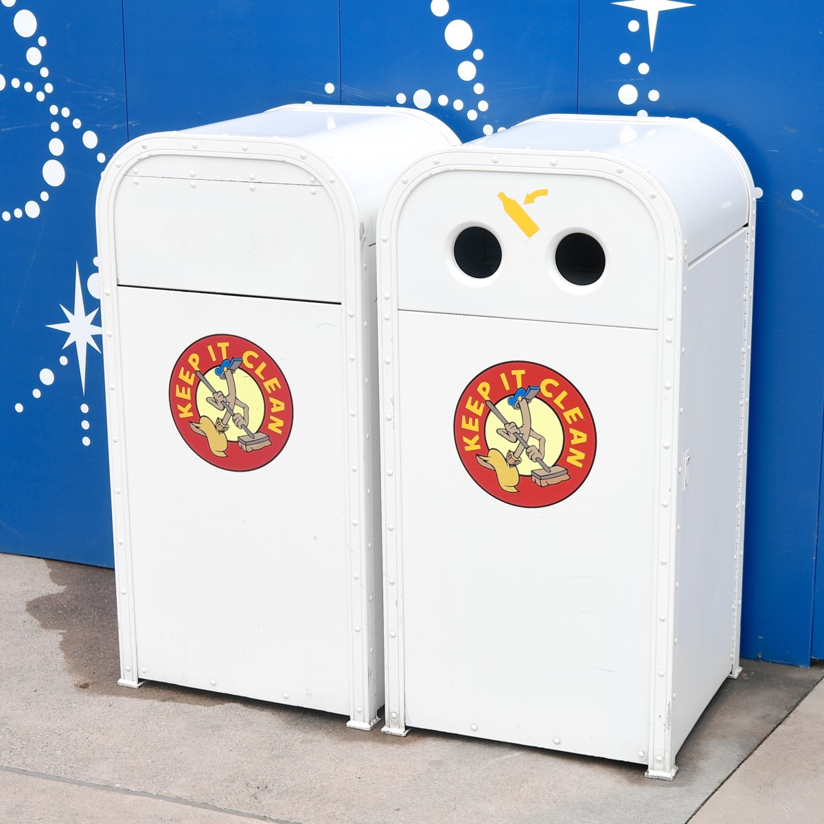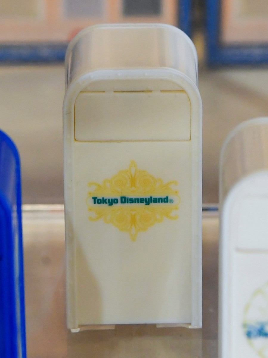 東京ディズニーリゾート内には、各テーマポートにあわせたフラップ式のトラッシュカン(ゴミ箱)が設置されています。