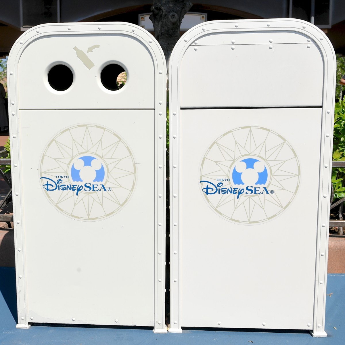 東京ディズニーシーのメインエントランスにあるロゴ入りトラッシュカン。