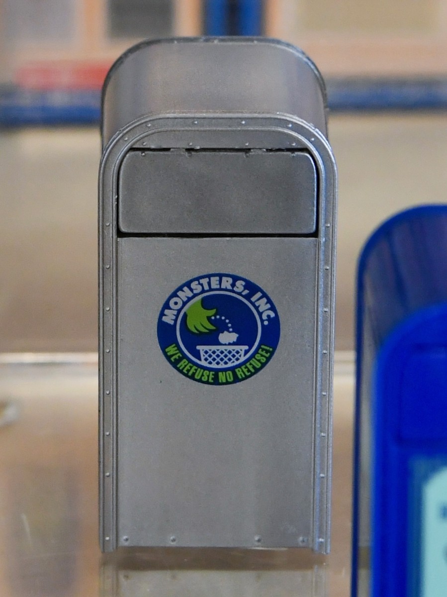 東京ディズニーランド/トゥモローランドにあるアトラクション「モンスターズ・インク“ライド&ゴーシーク!”」付近に設置されているトラッシュカン。