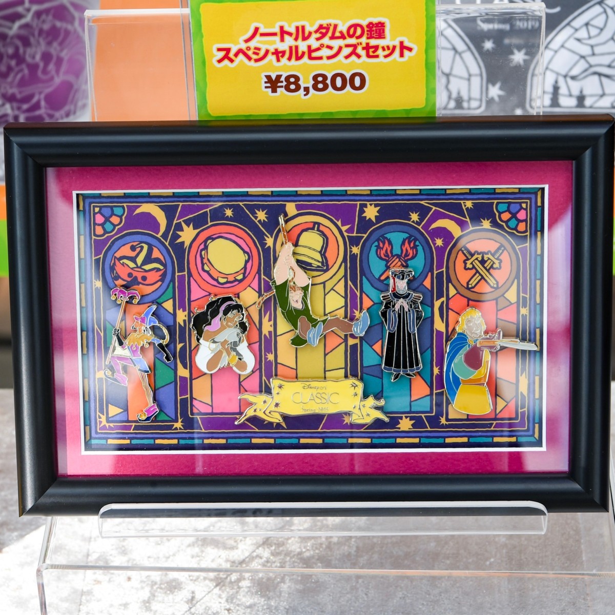 ノートルダムの鐘、シンデレラ、ミッキー&フレンズのピンバッジ全8種類がラインナップされています。