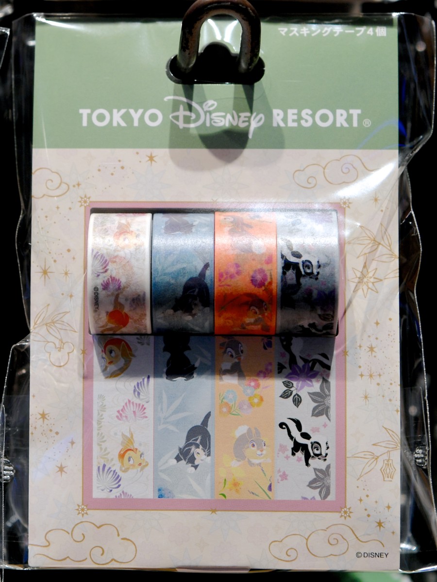 『ピノキオ』の「クレオ」、「フィガロ」、『バンビ』の「とんすけ」、「フラワー」のマスキングテープ4個セット。