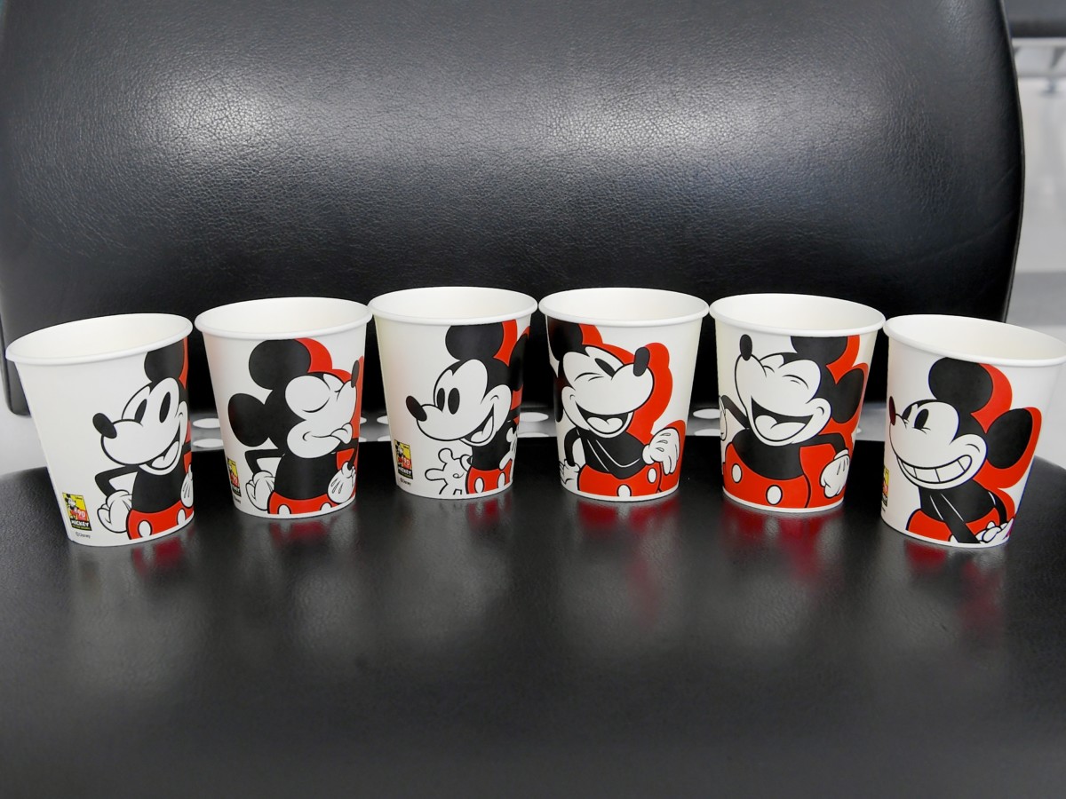 様々なミッキーマウスの表情が楽しめる6種類の紙コップ、