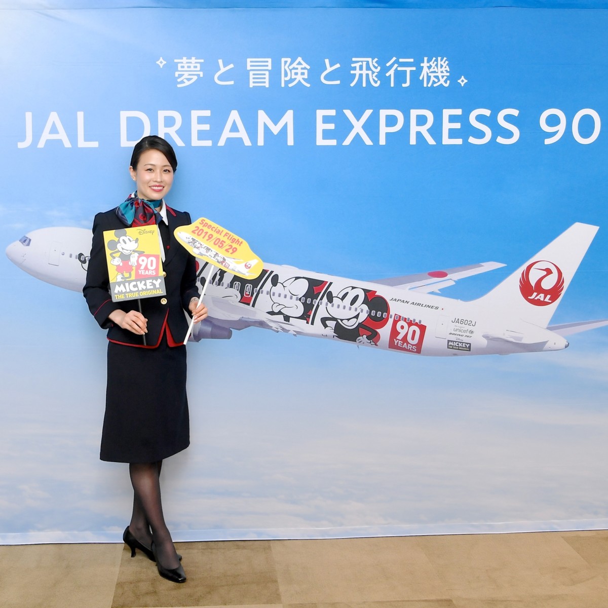 JALが「ミッキーマウス」のスクリーンデビュー90周年を記念し、2018年11月12日~2020年3月頃まで運航している「JAL DREAM EXPRESS 90(ドリーム エクスプレス 90)」