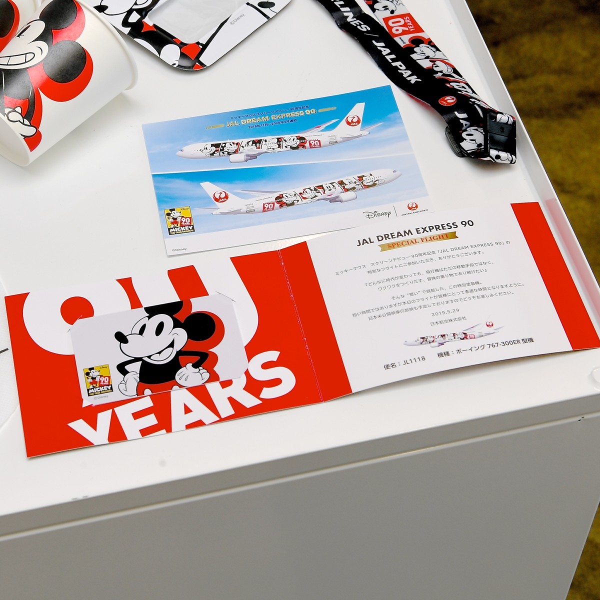 搭乗の記念として、「ミッキーマウス」と「JAL DREAM EXPRESS 90(ドリーム エクスプレス 90)」がデザインされた「搭乗証明書」がプレゼントされました。