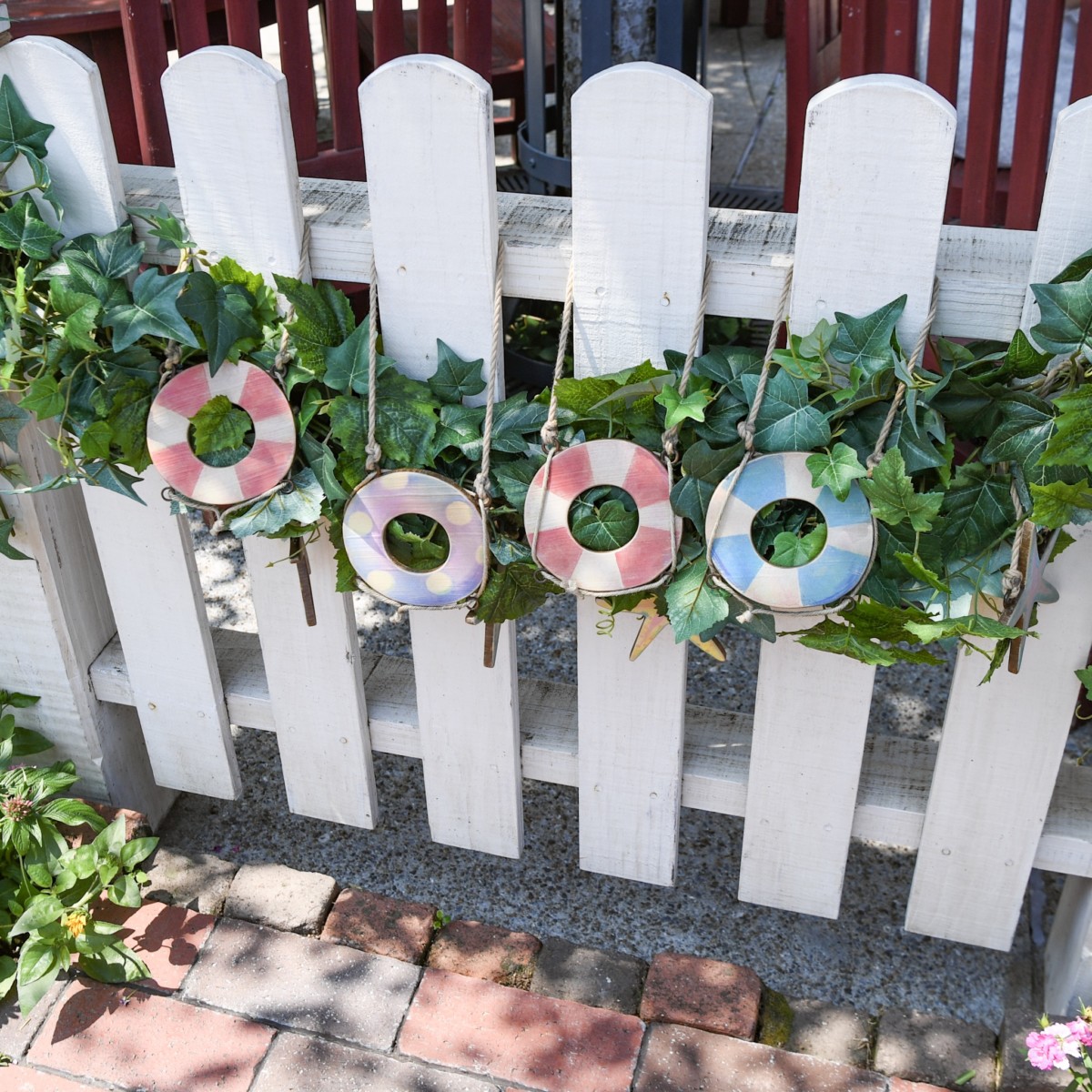 ダッフィーたちのぬいぐるみバッジなどを浮き輪のガーランドに入れて撮影できるフォトスポットも☆