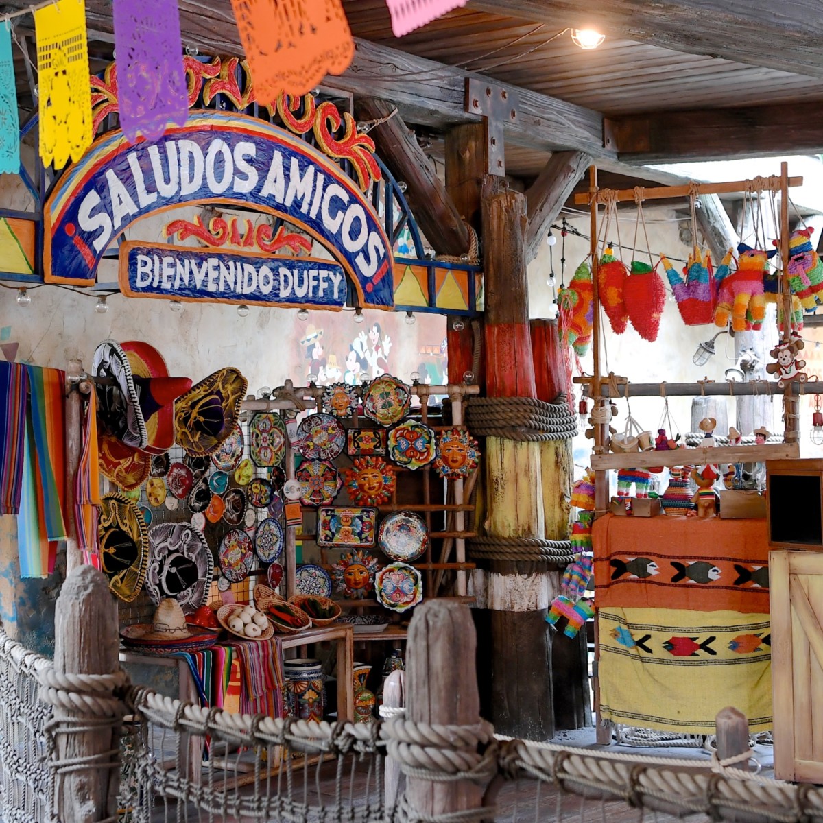 新鮮な果物や村の民芸品、楽器の屋台が並ぶ一角で、ラテンアメリカの伝統的な衣装を身につけたダッフィーと素敵な時間が過ごせます☆