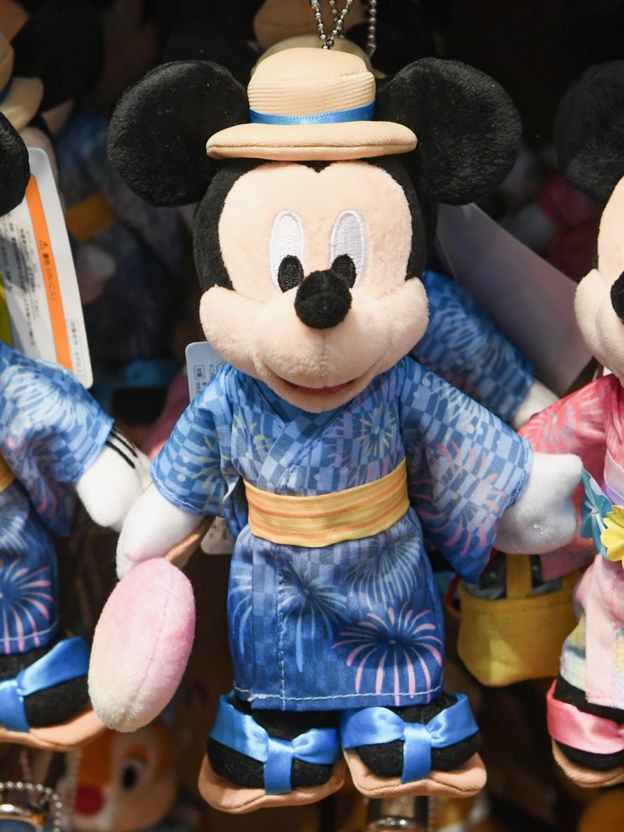 夏ならではの和装姿がかわいいミッキー&フレンズのぬいぐるみバッジ。