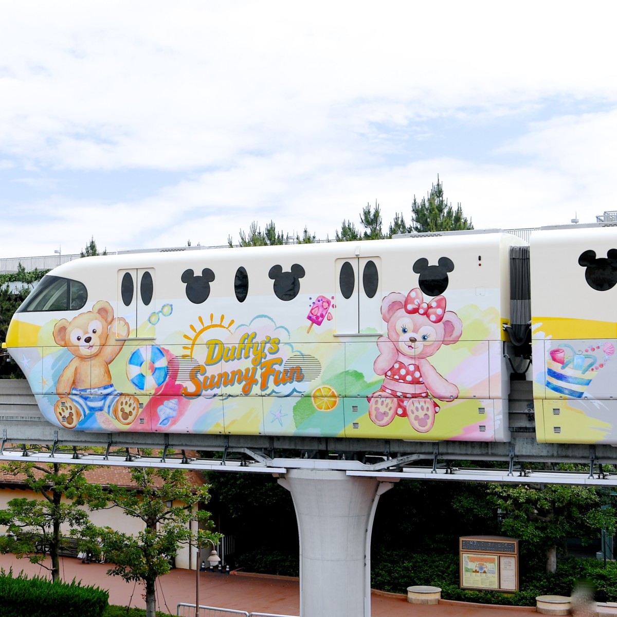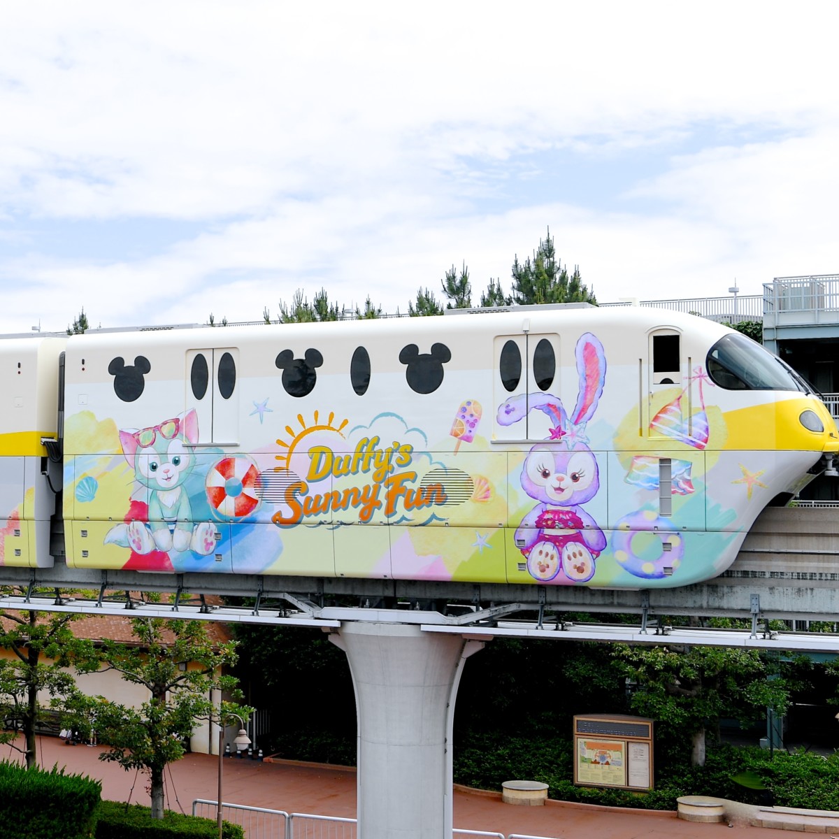 水着に着替えたダッフィー&フレンズをモノレールの外装にデザイン。